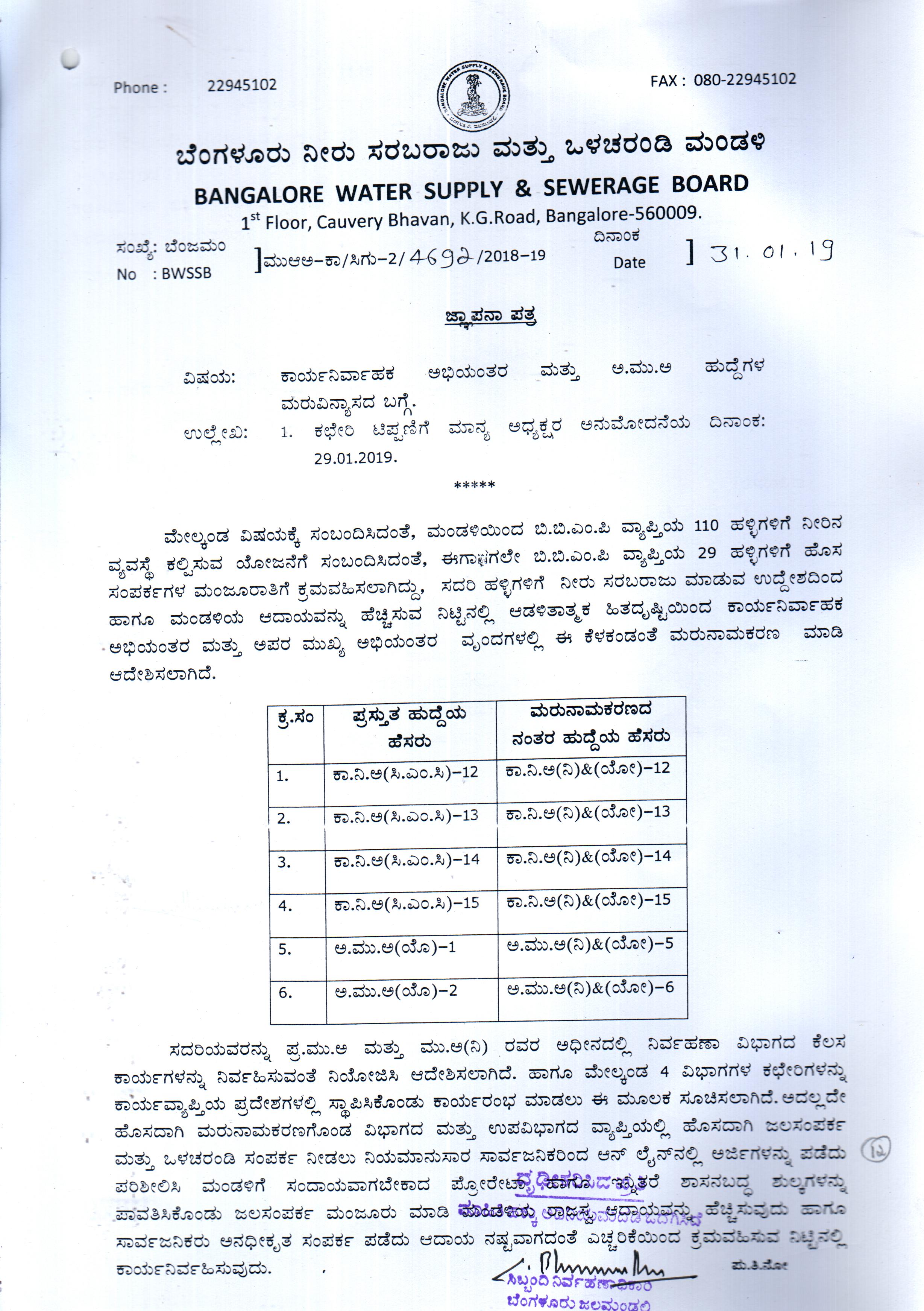 BWSSB-Kaveri Electrical Division & Sub Division