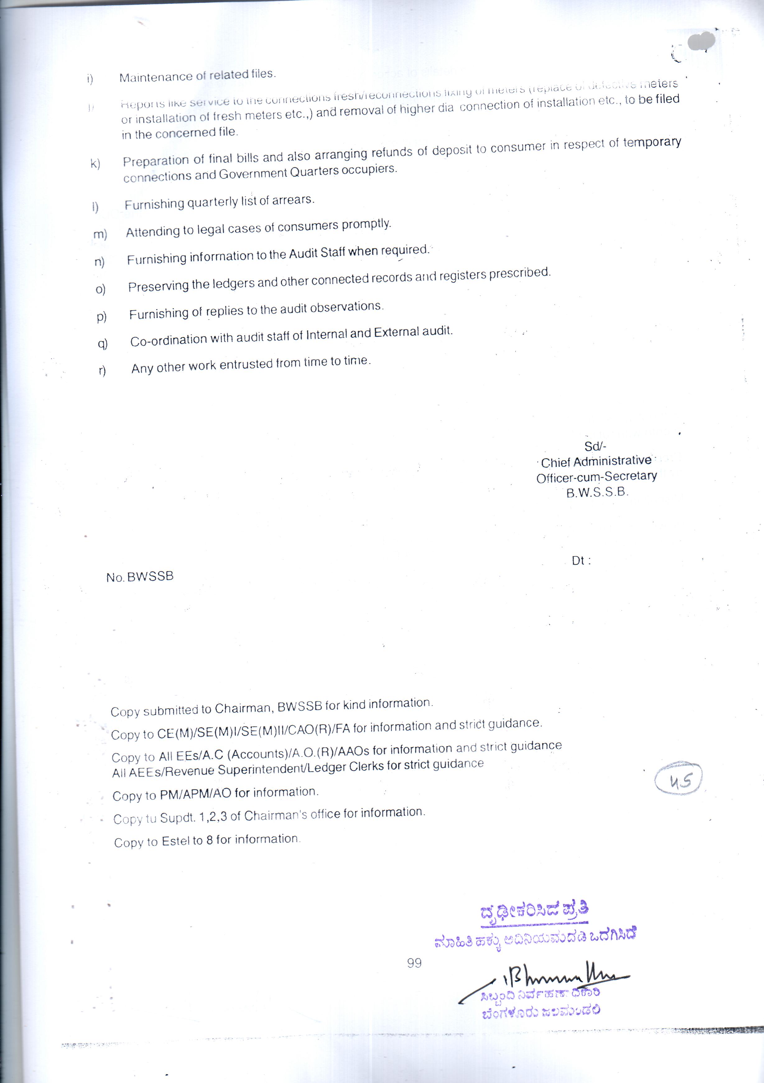 Indexing and Cataloging of BWSSB at Chairman Office