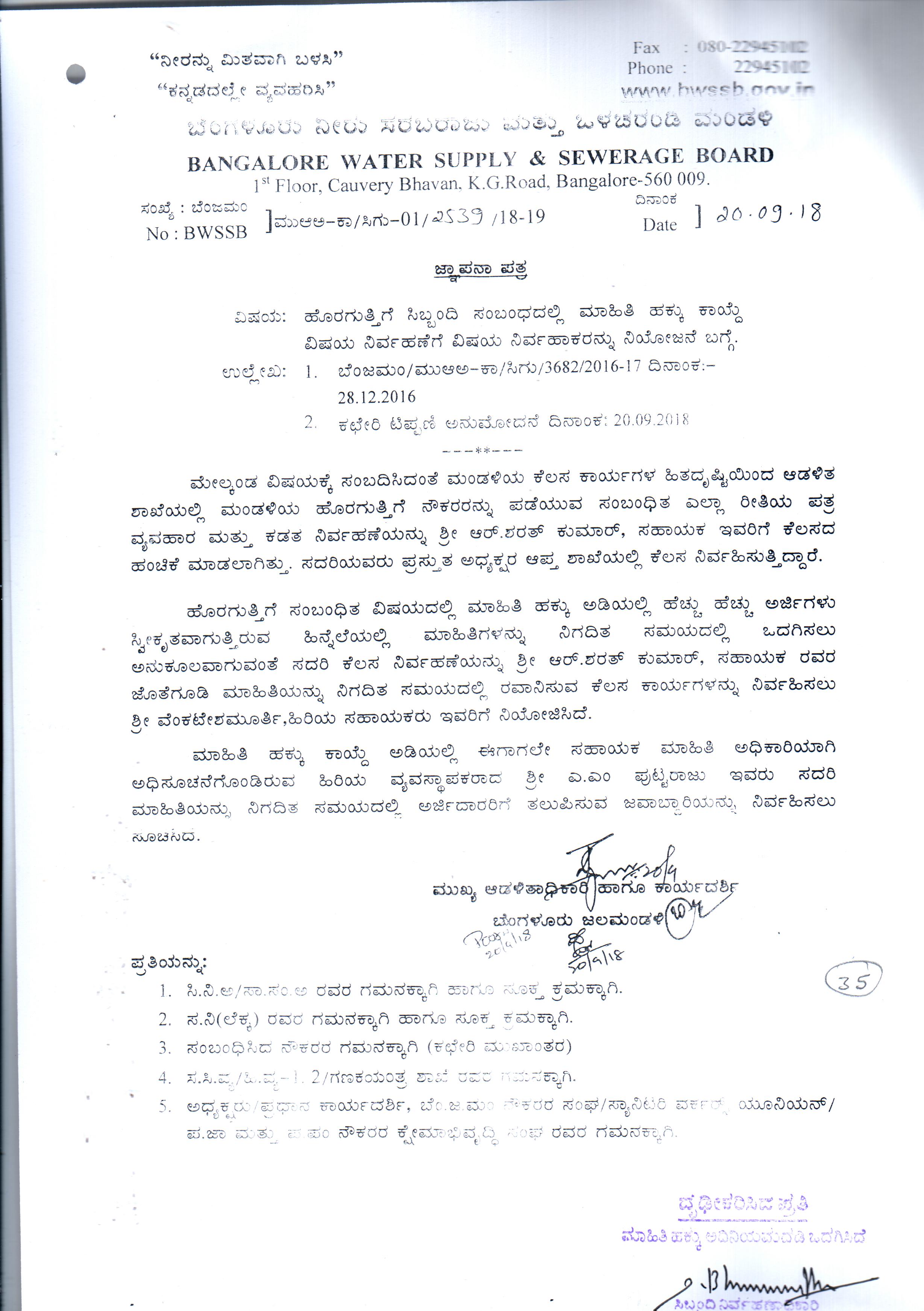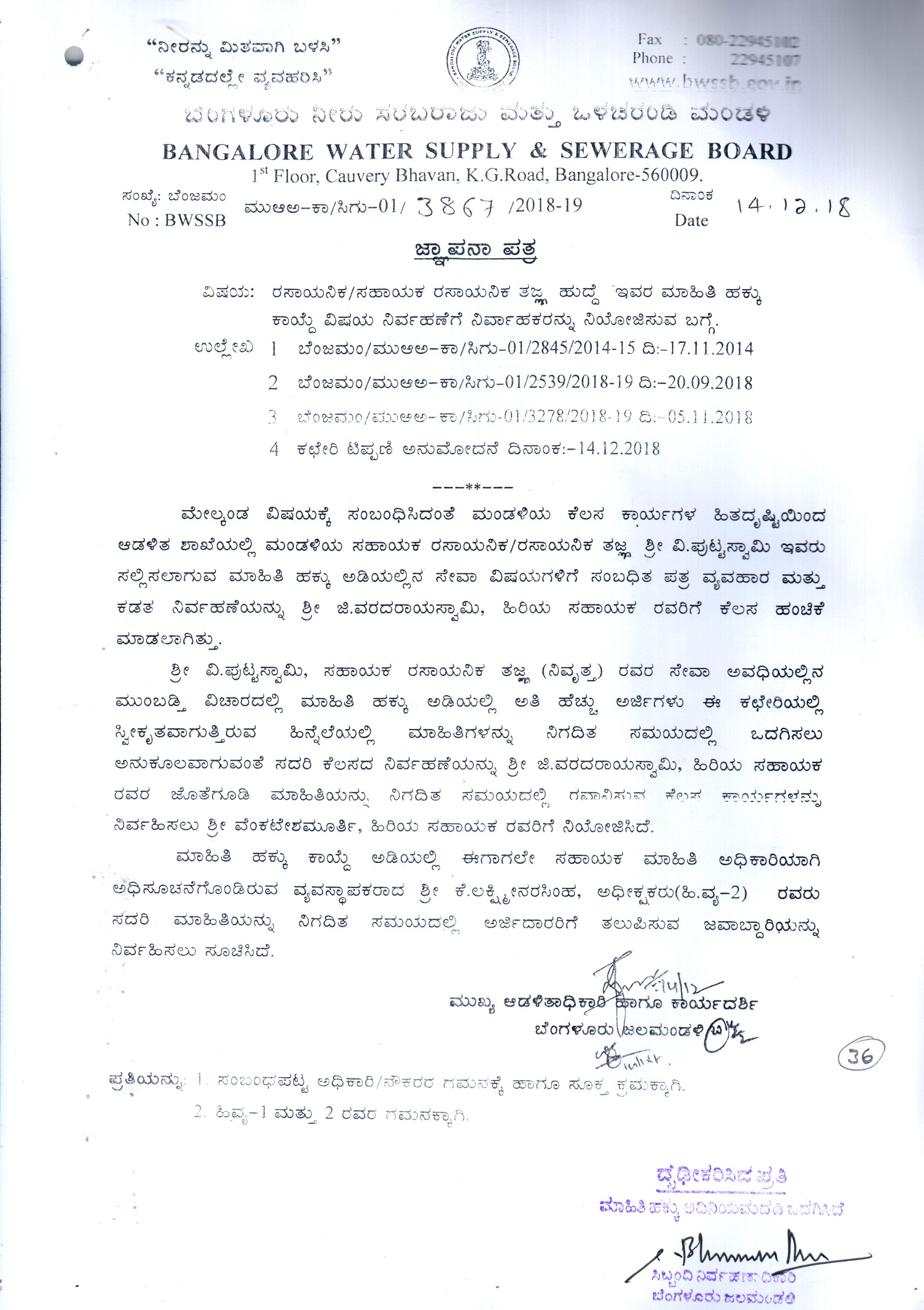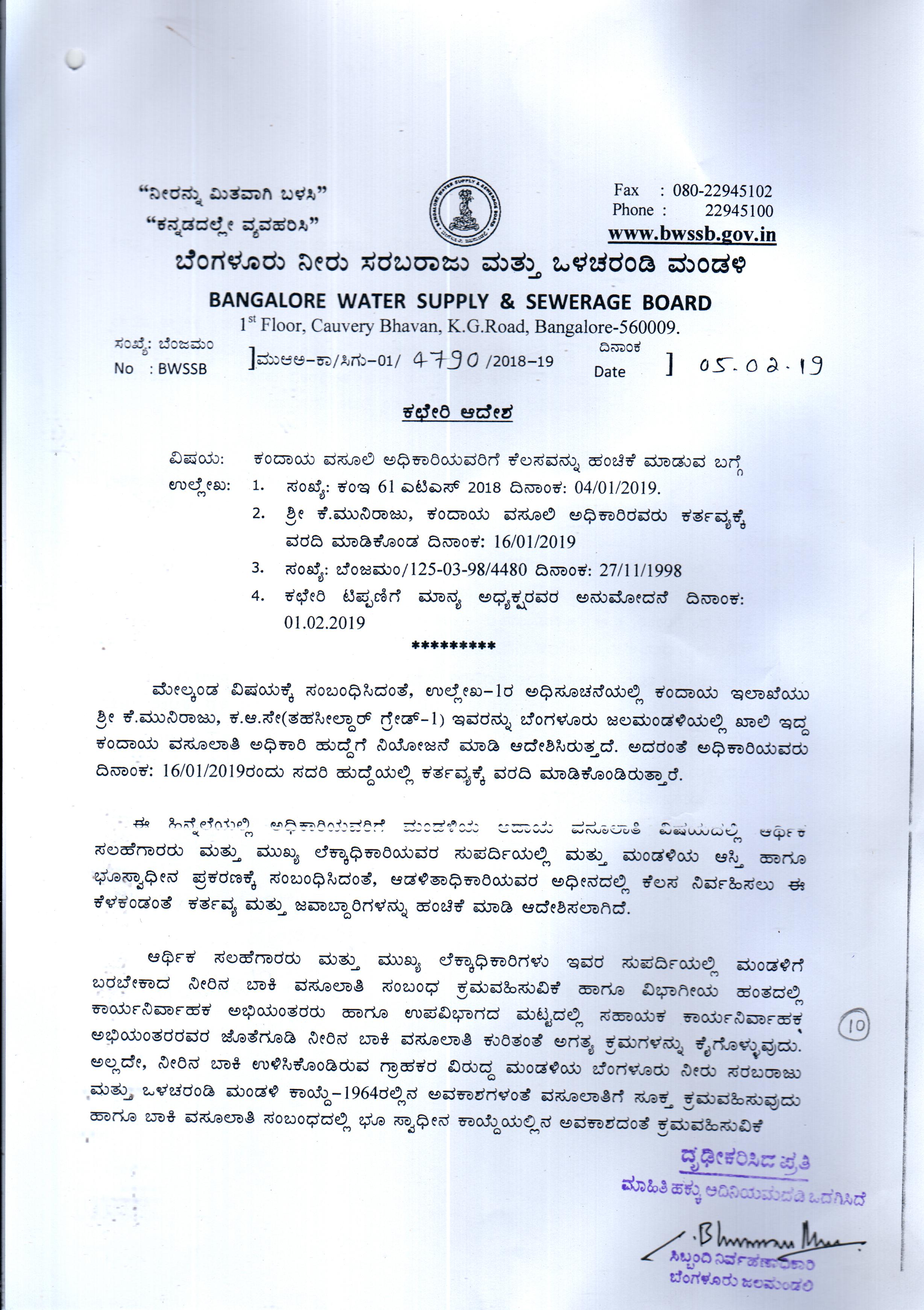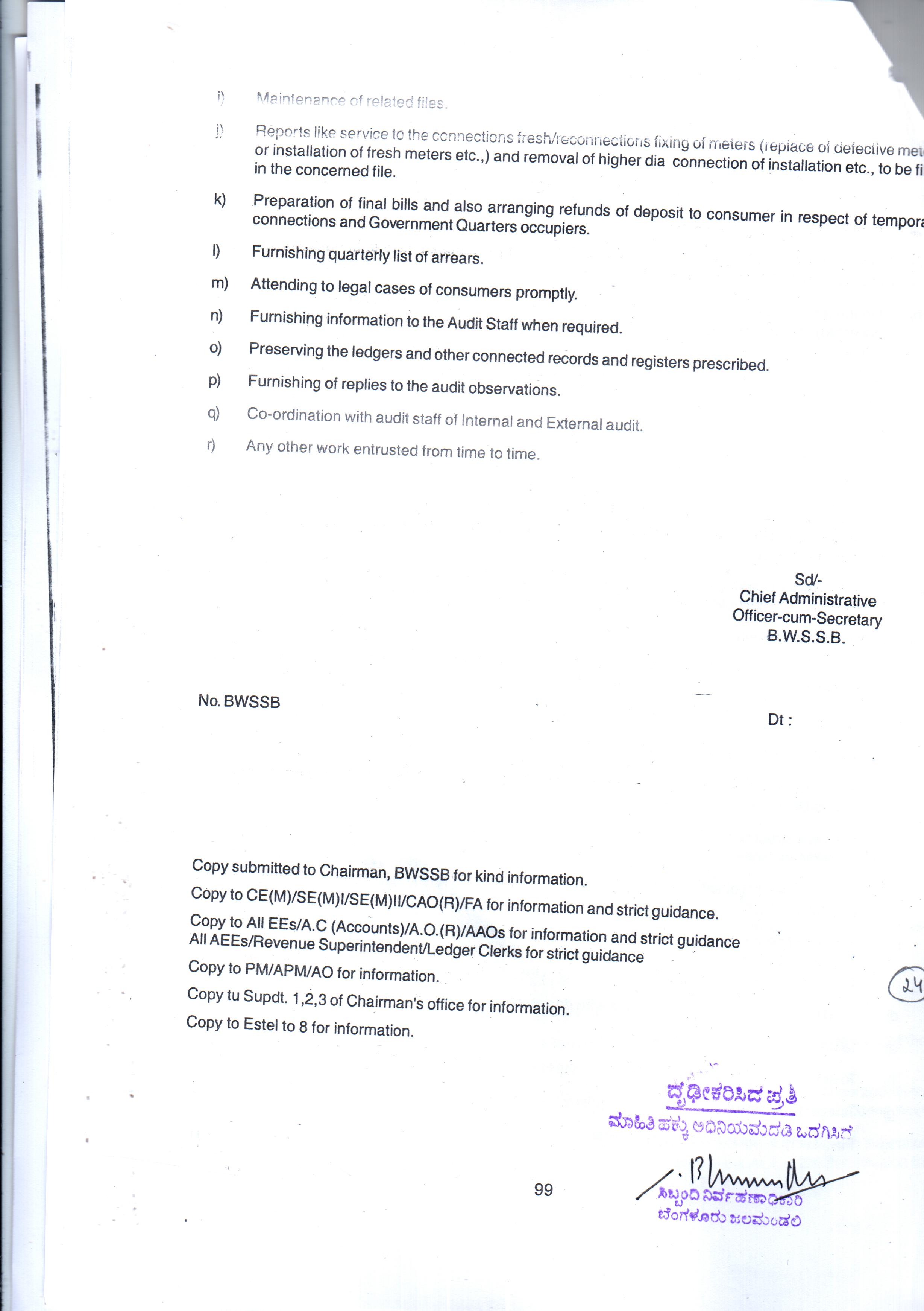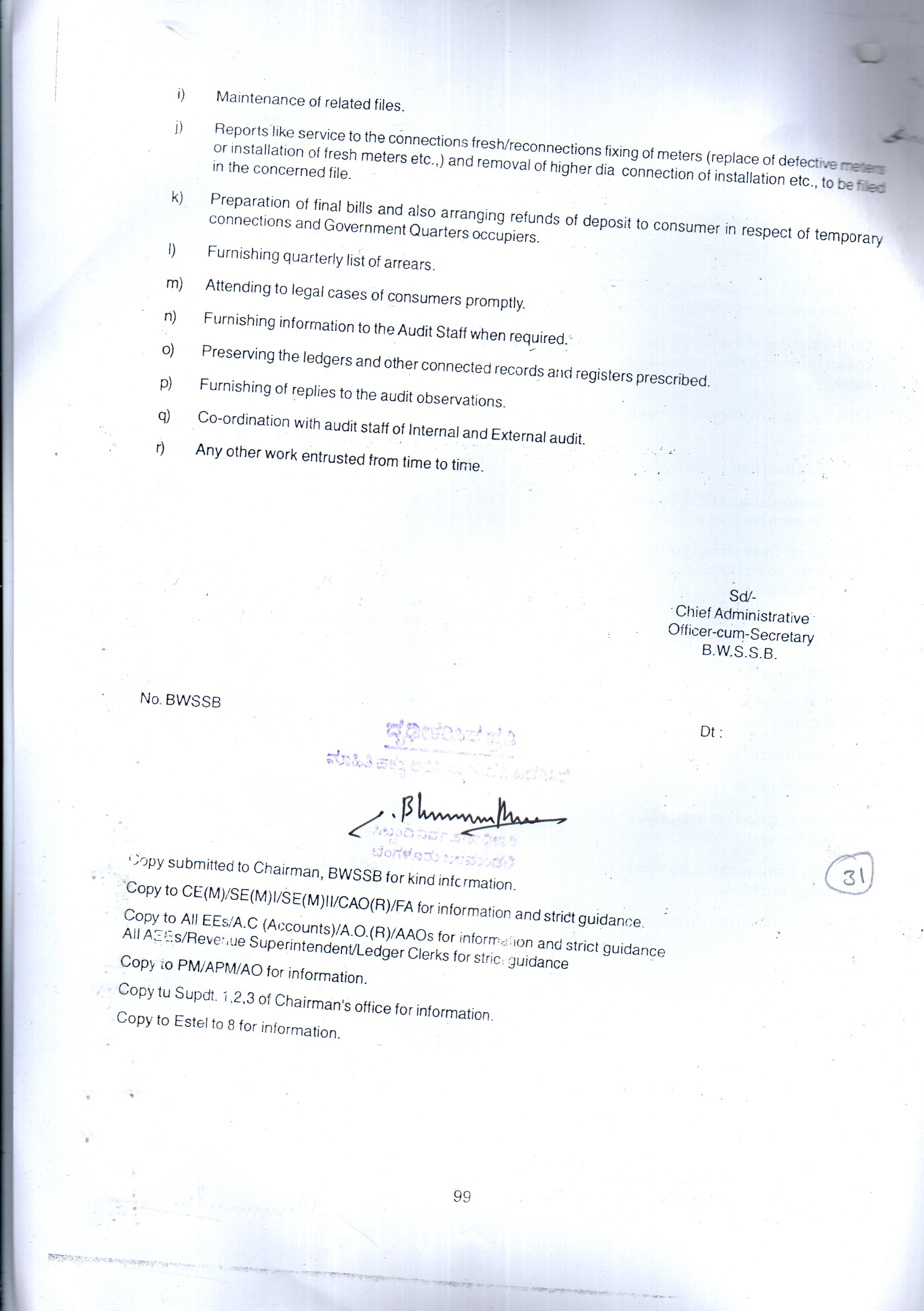Indexing and Cataloging of BWSSB at Chairman Office