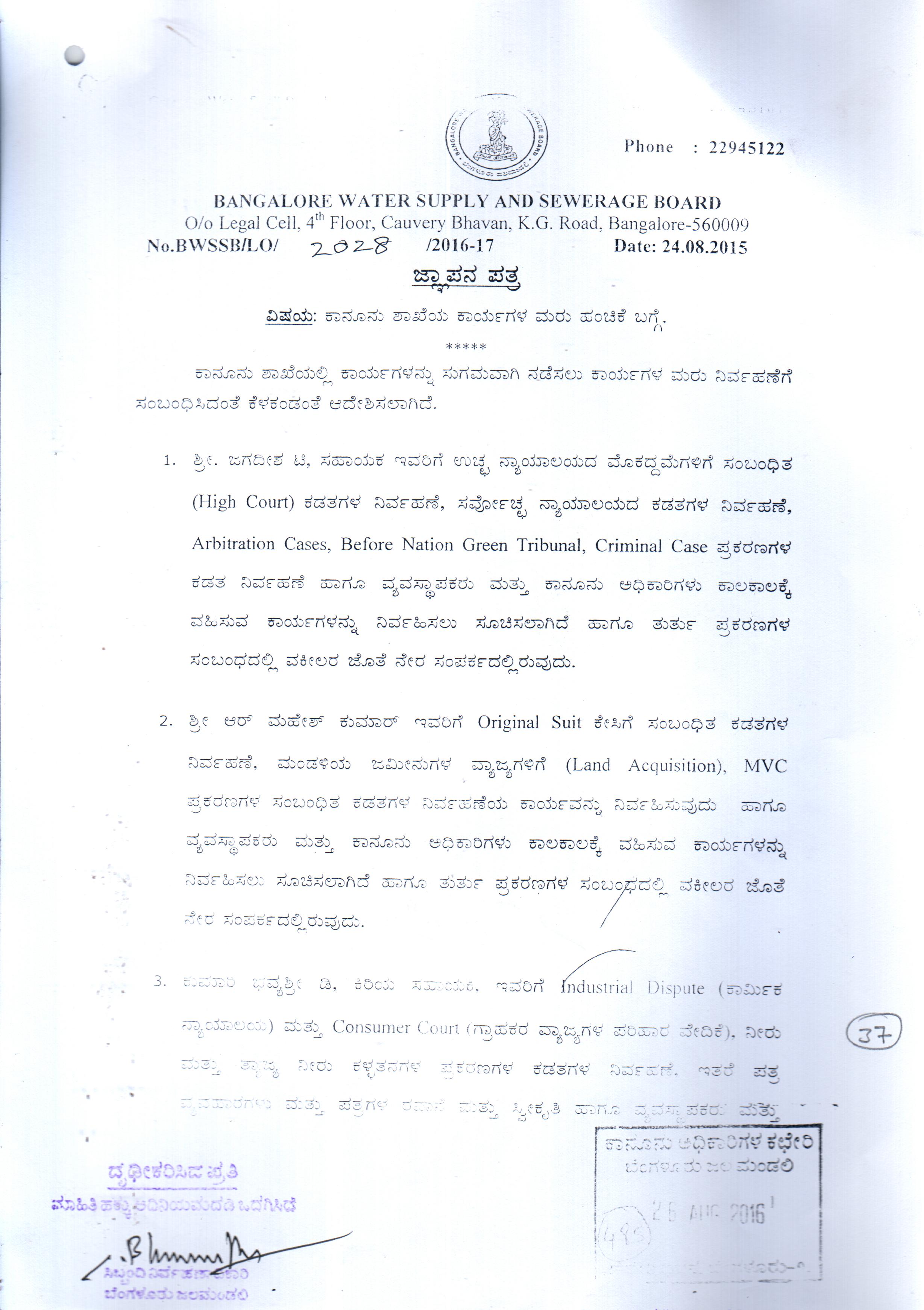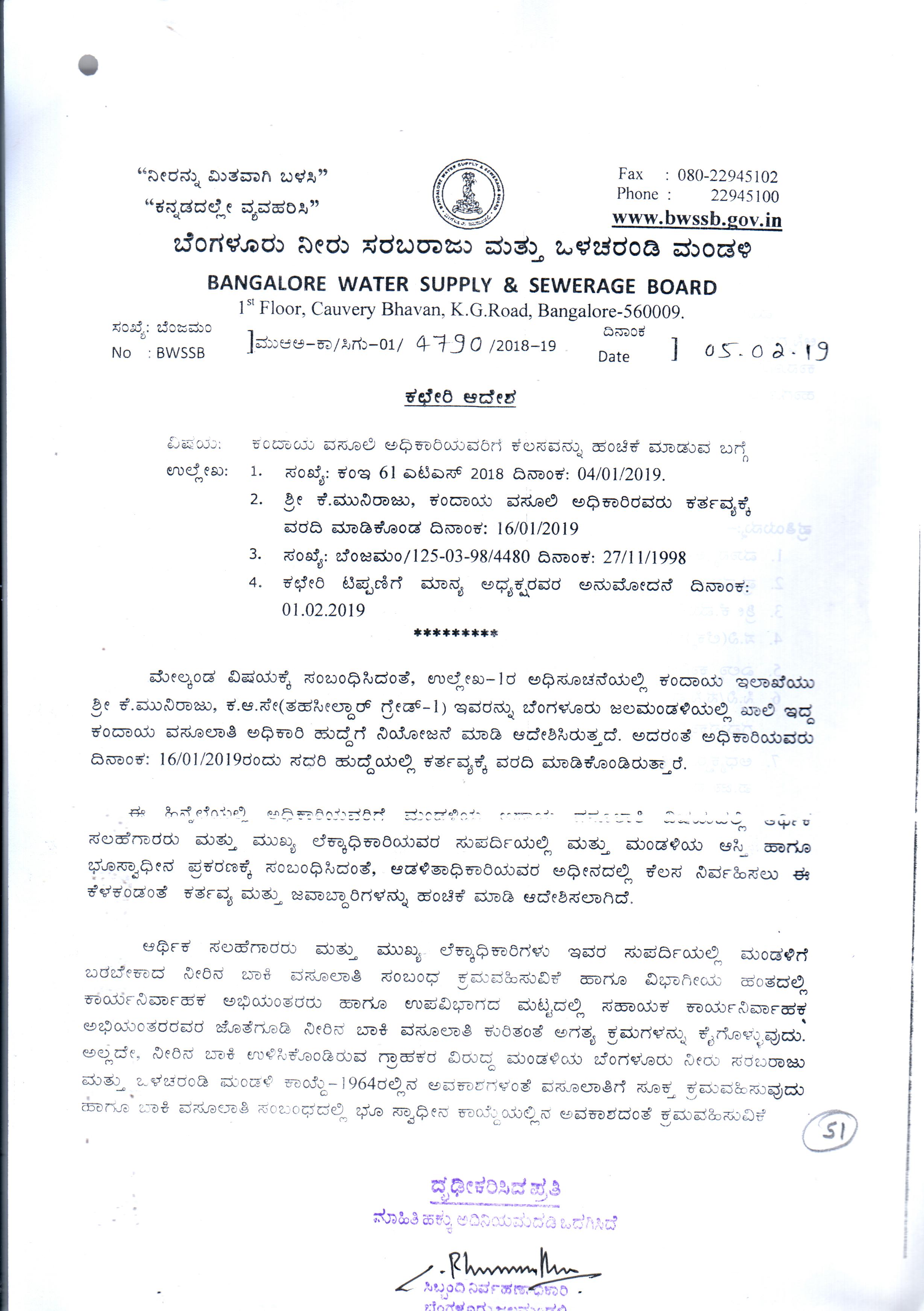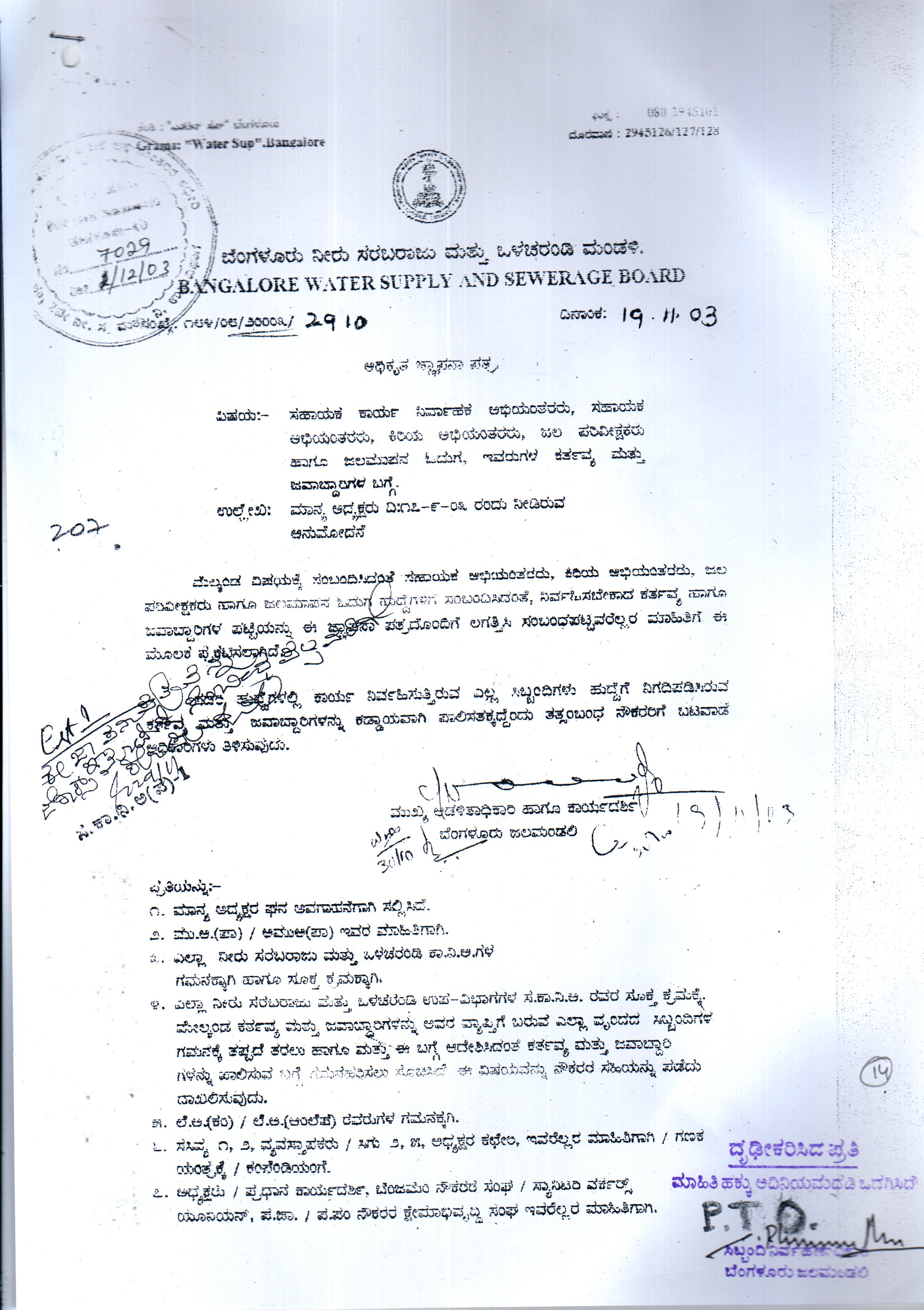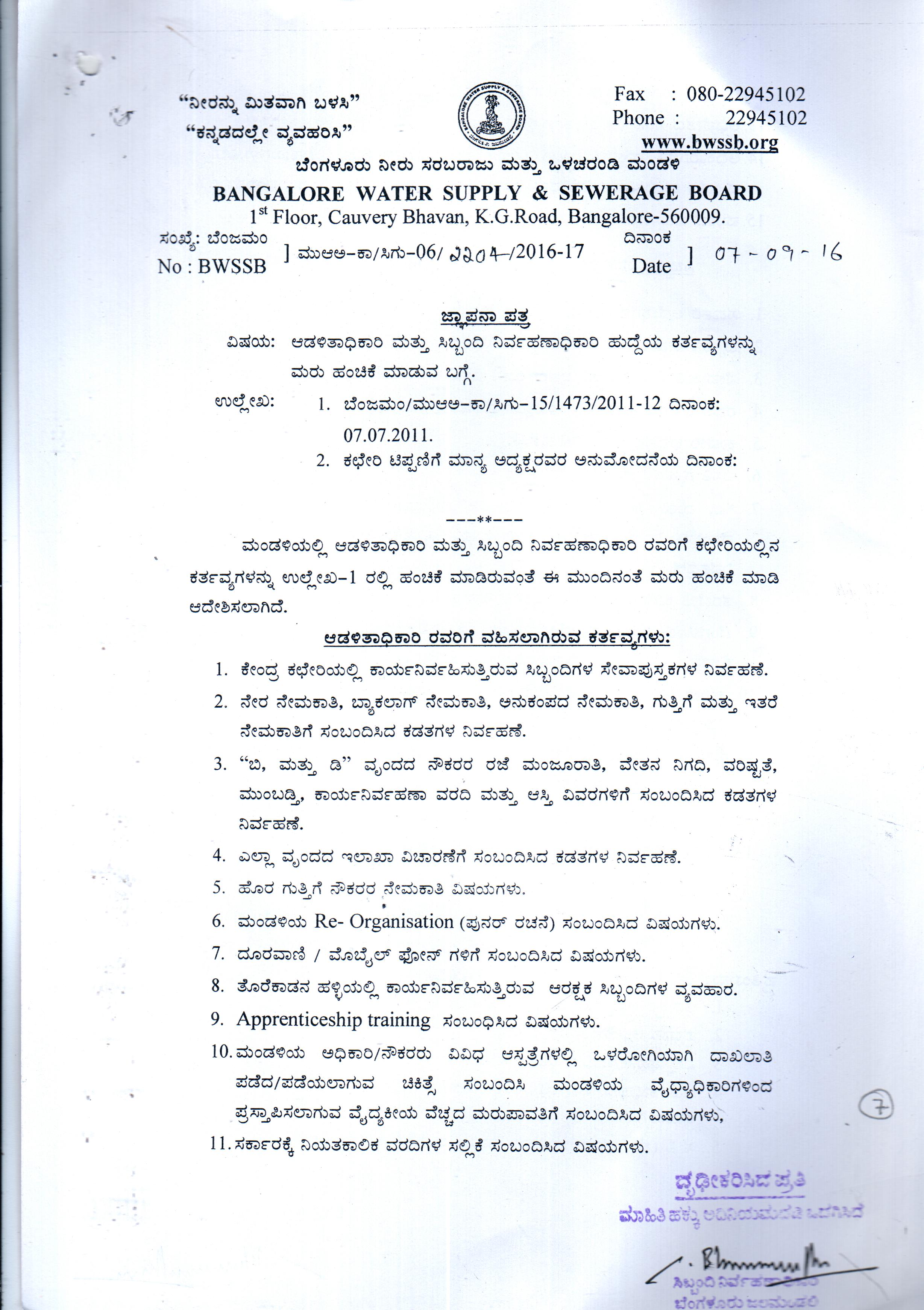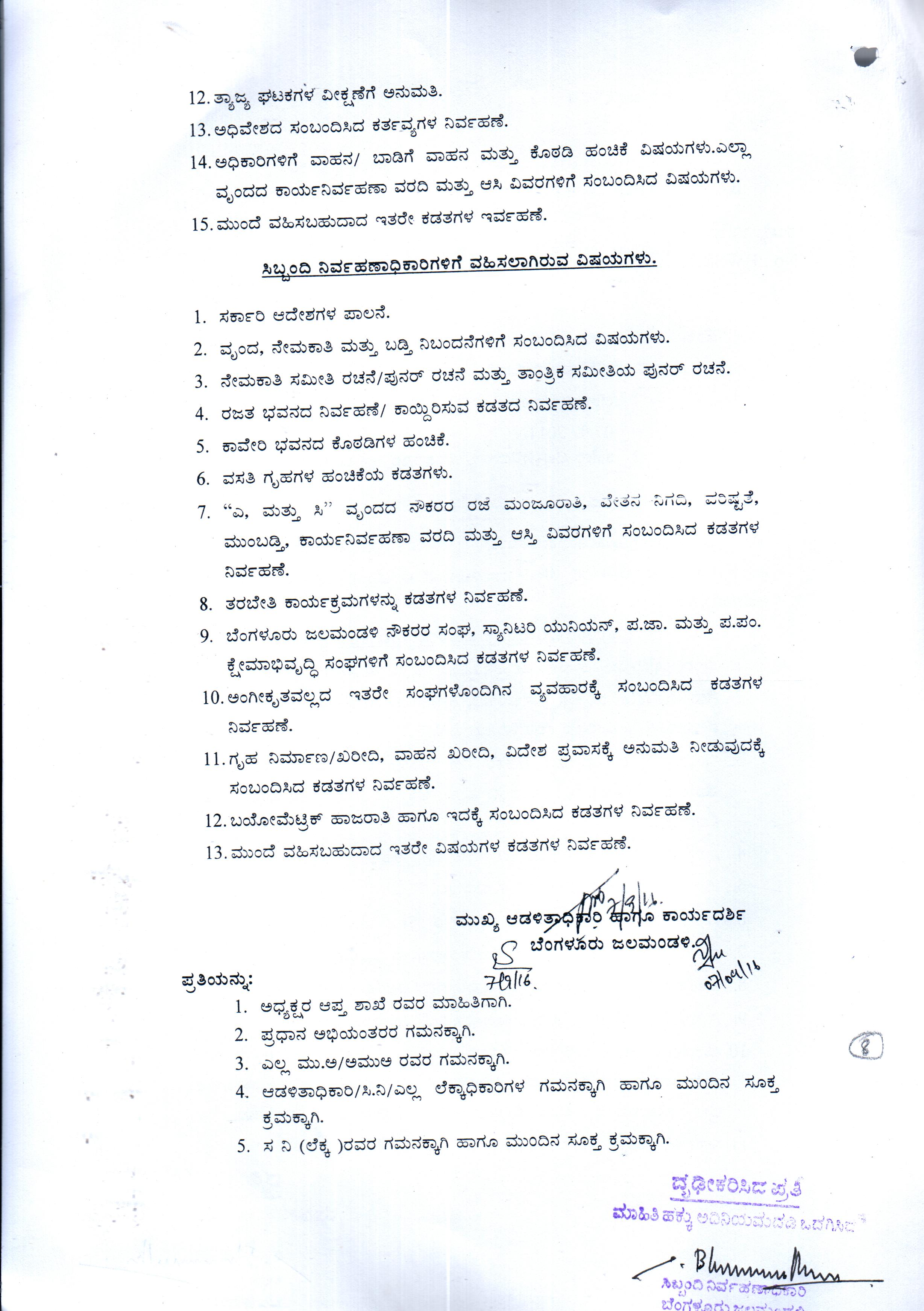 Indexing and Cataloging of BWSSB at Chairman Office