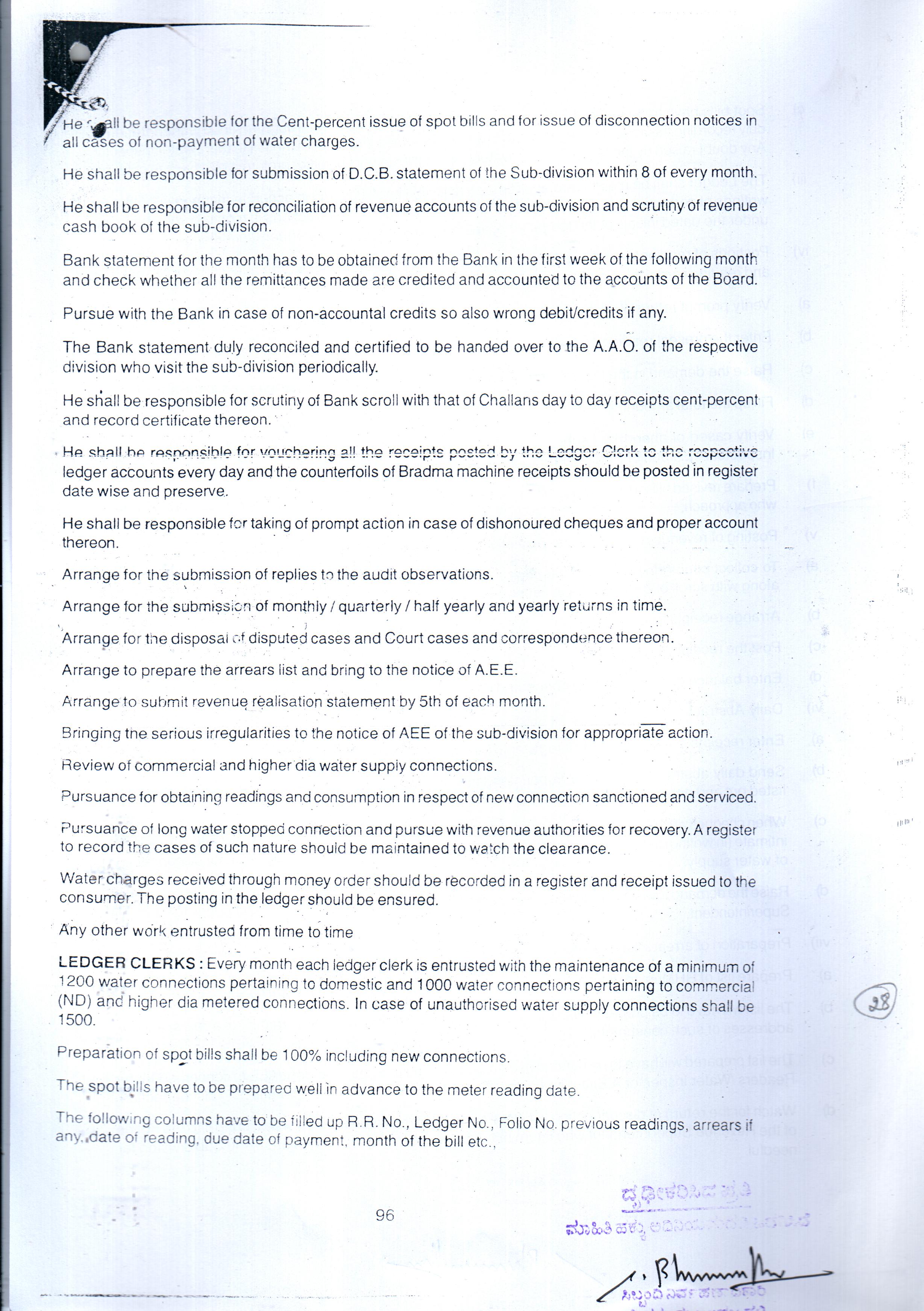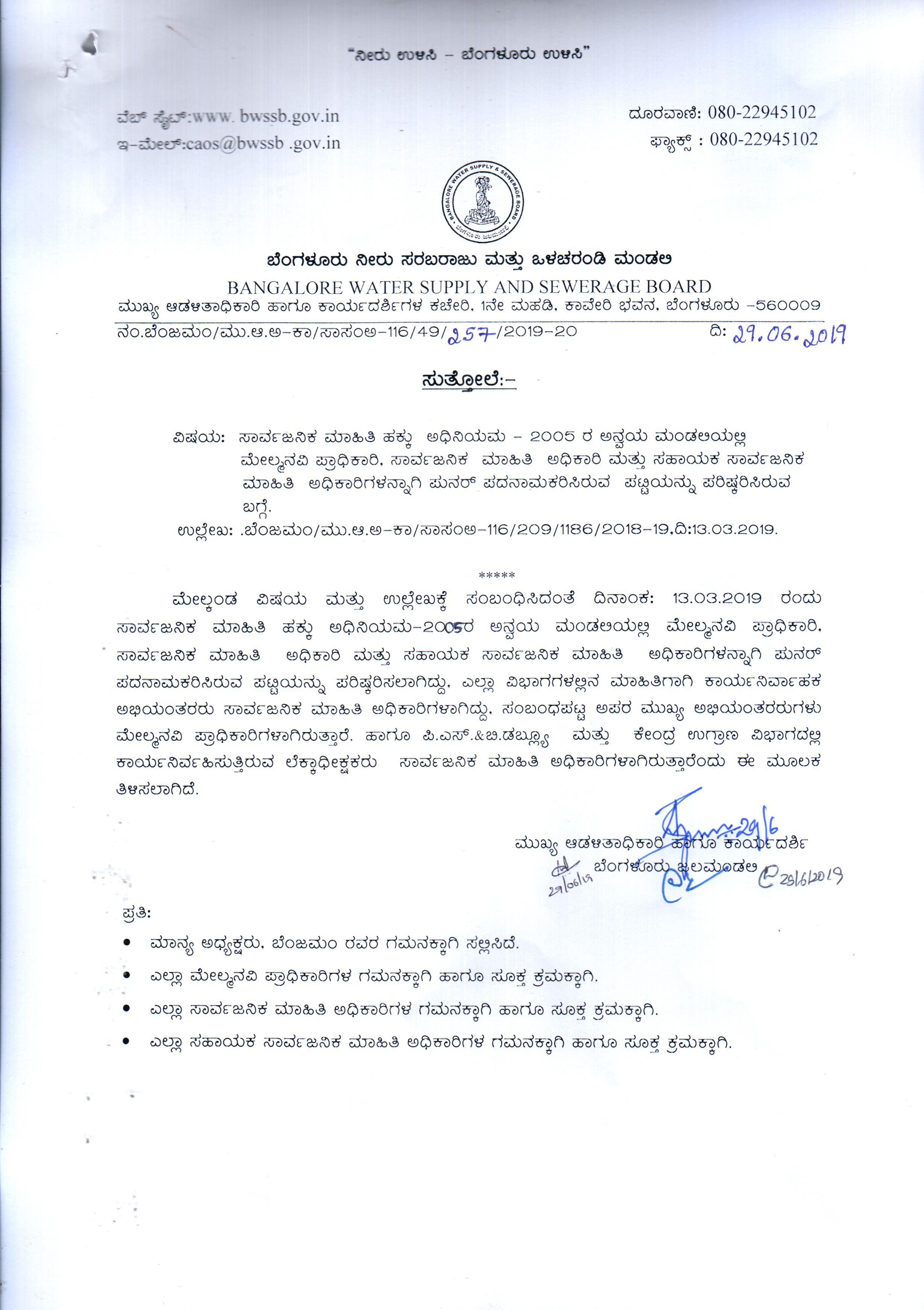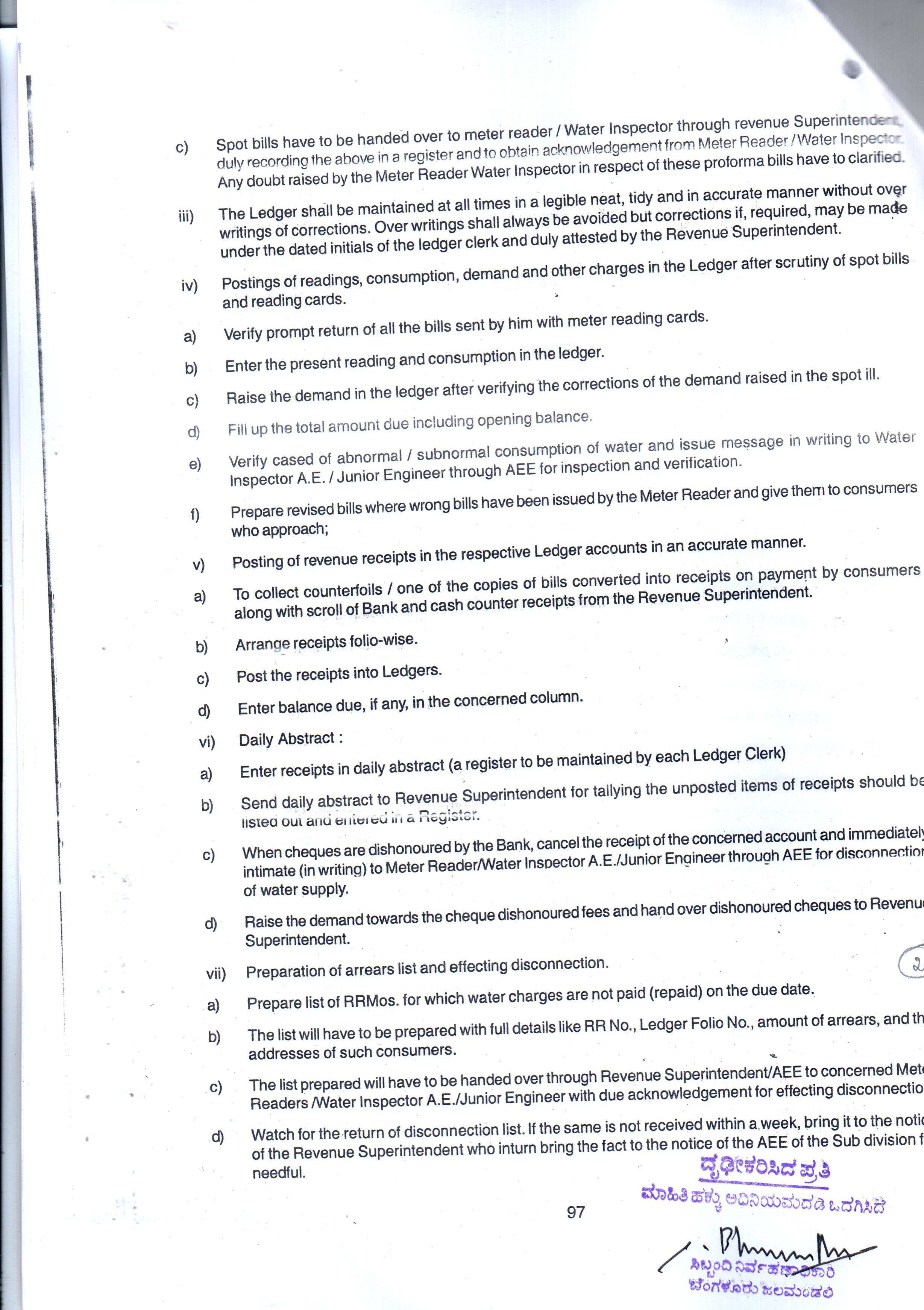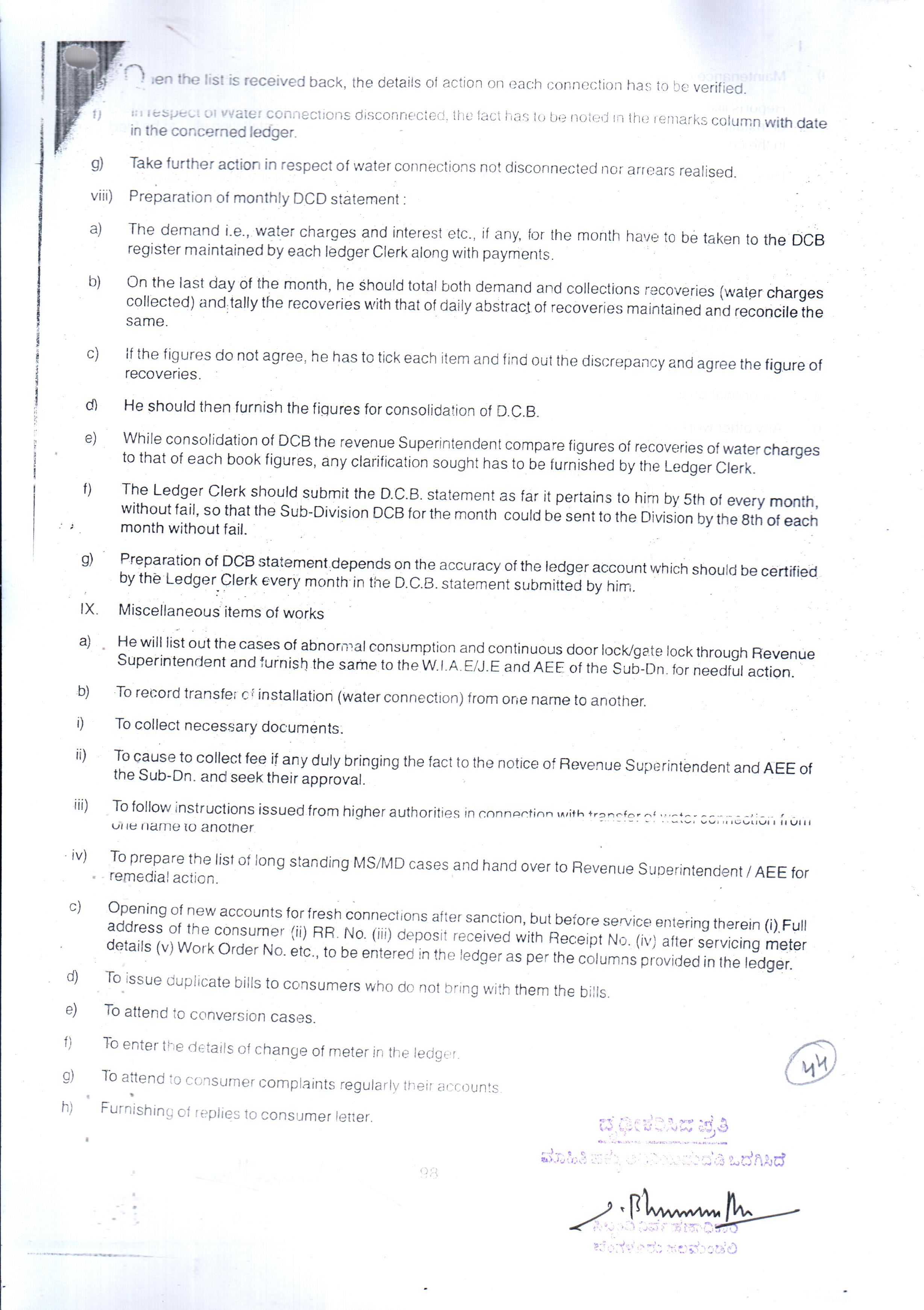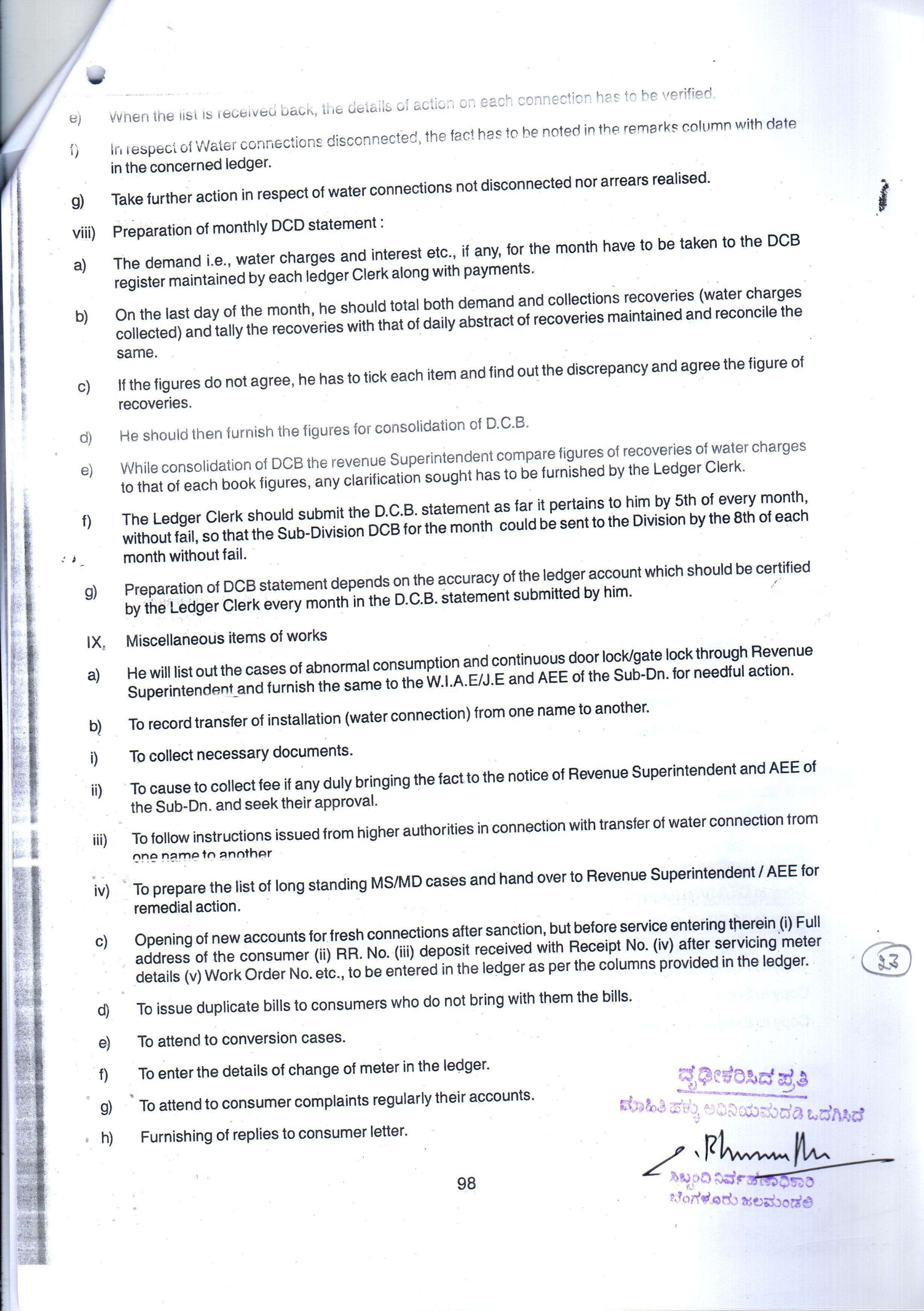 Indexing and Cataloging of BWSSB at Chairman Office