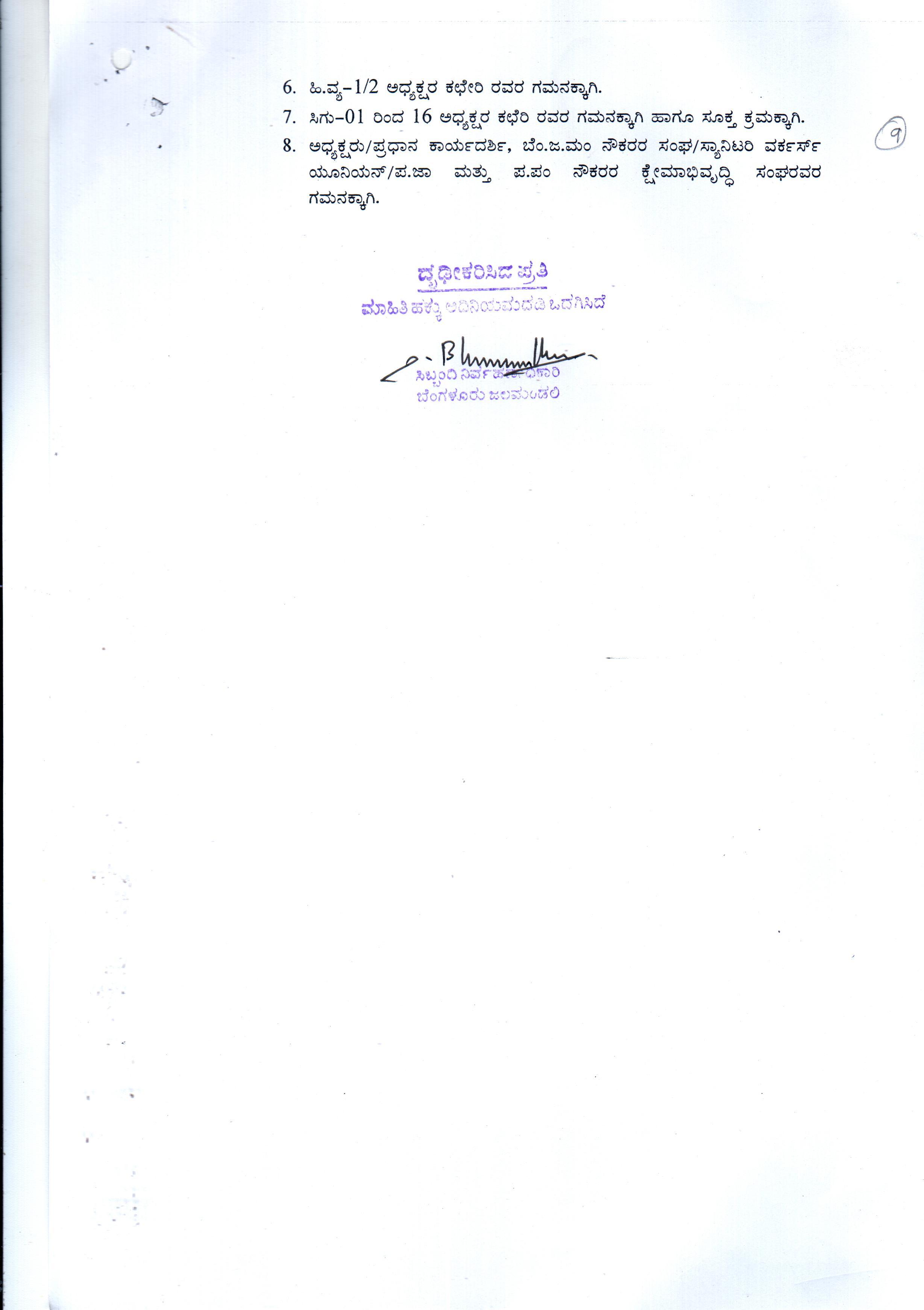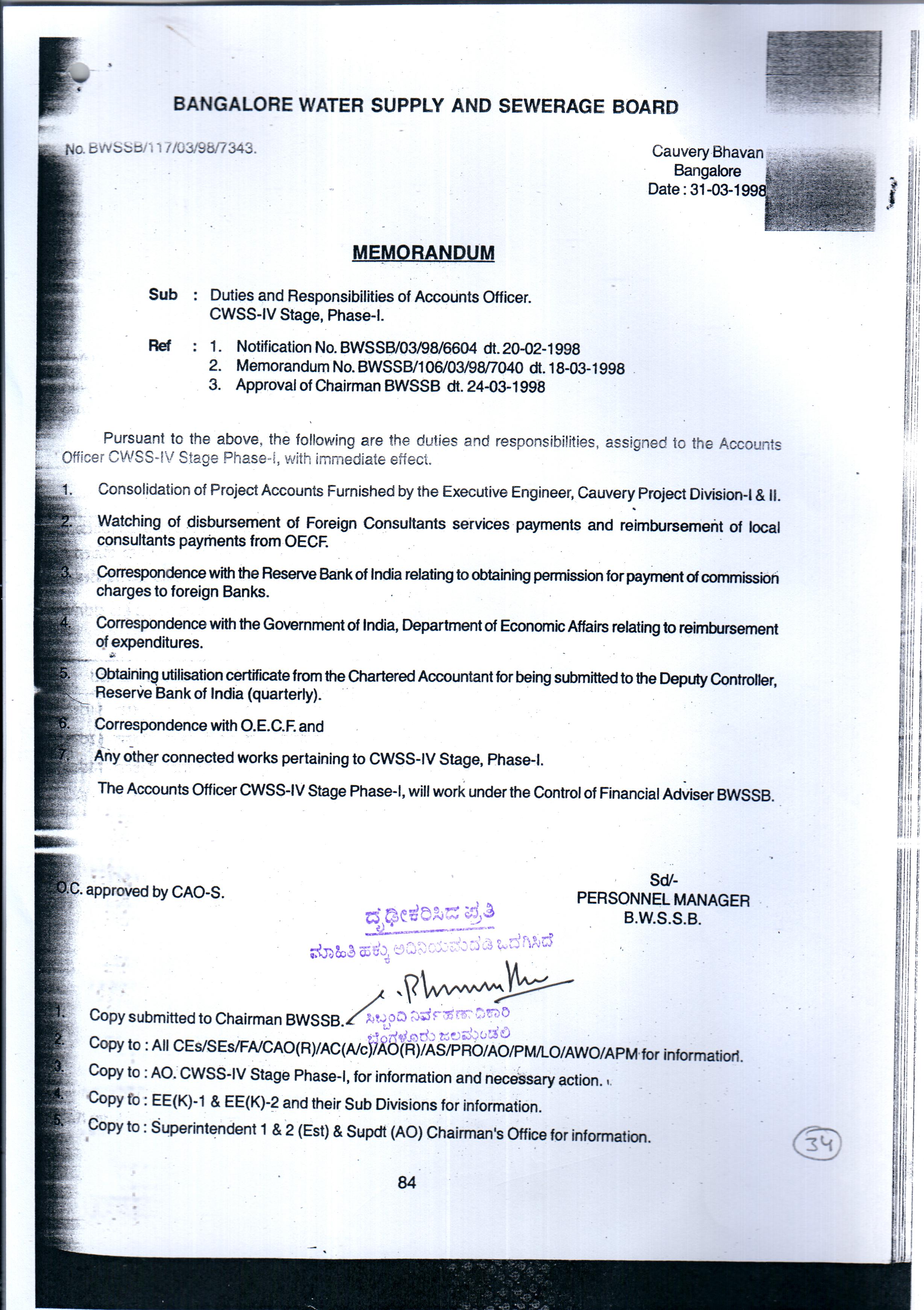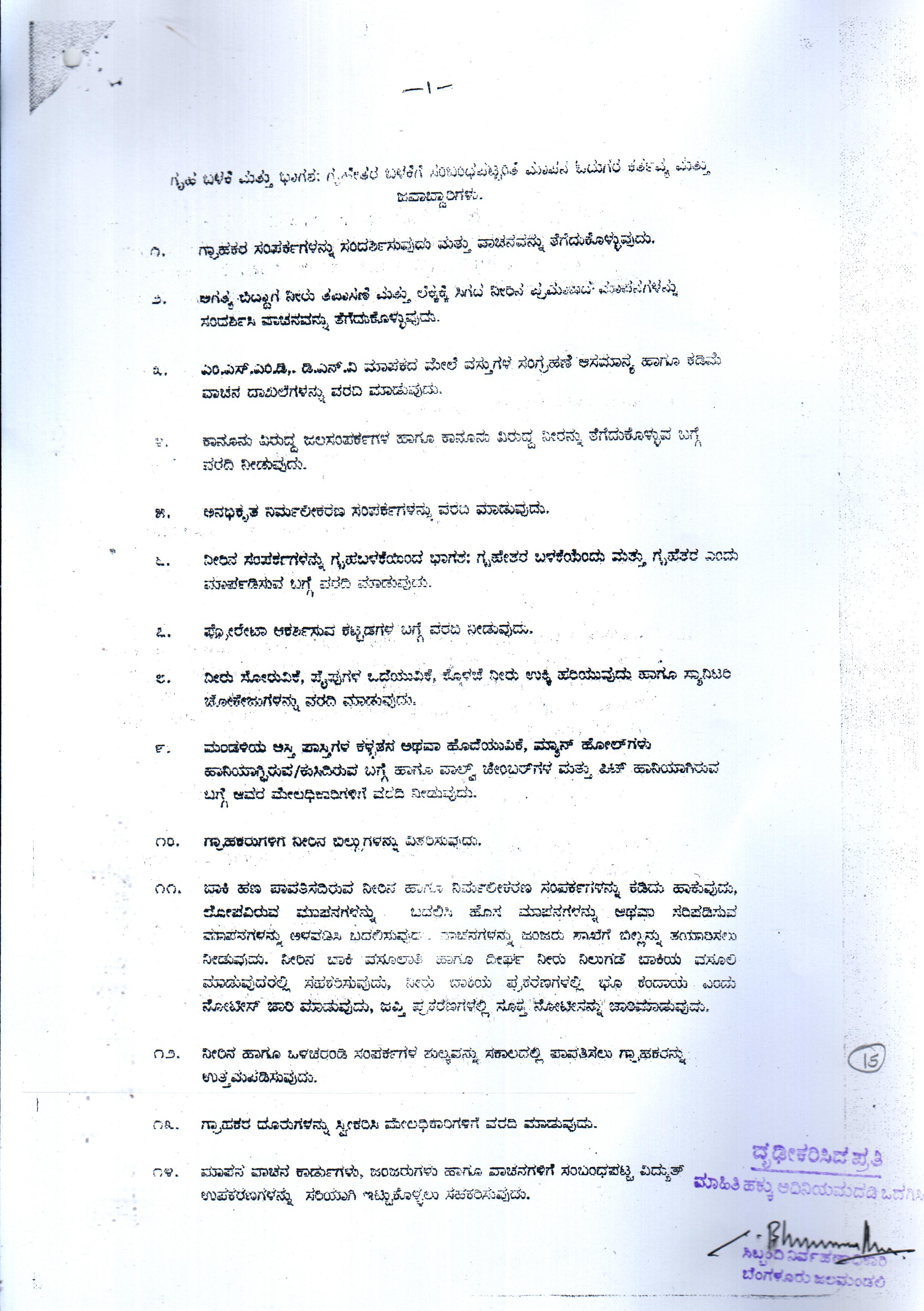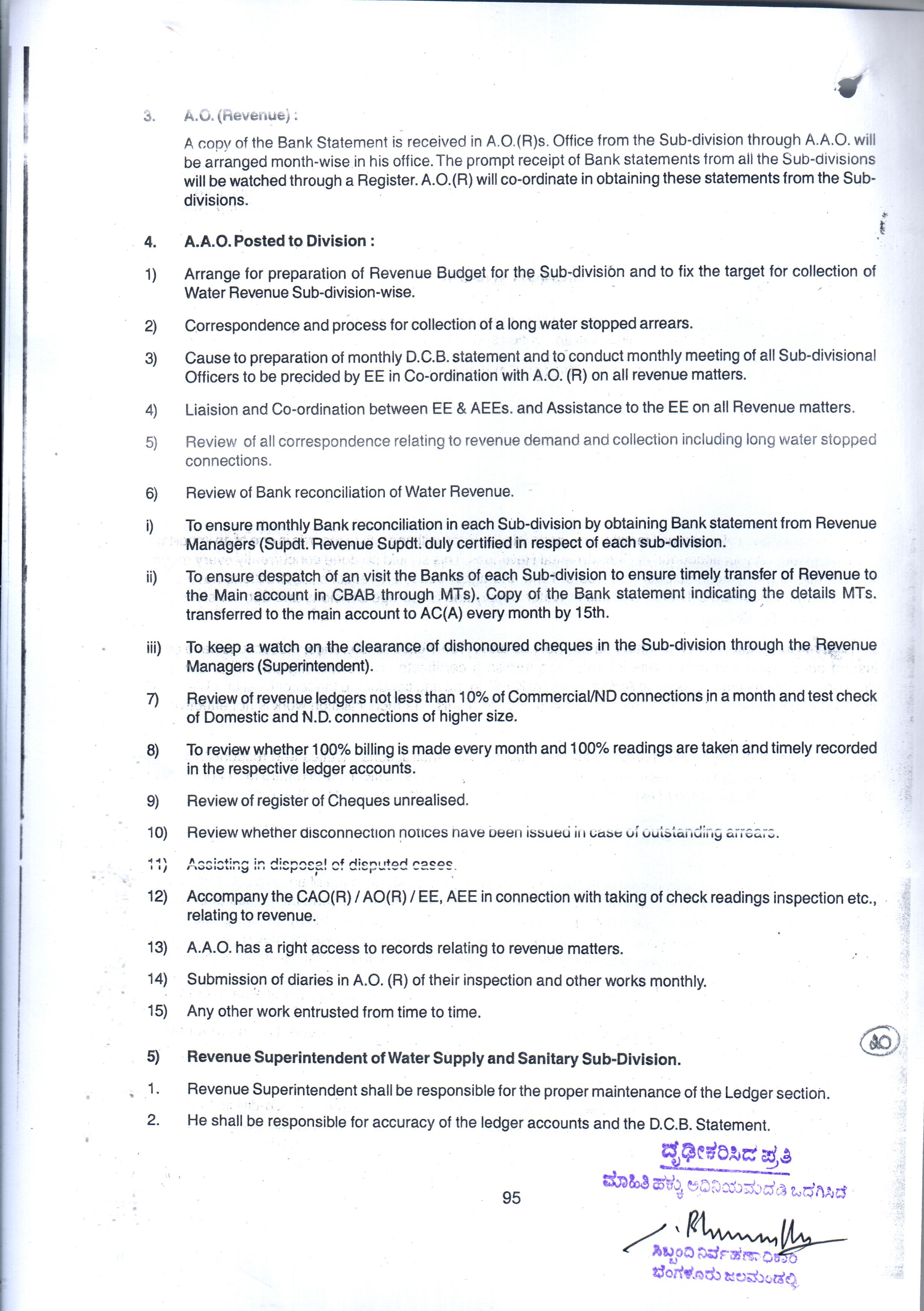 Indexing and Cataloging of BWSSB at Chairman Office