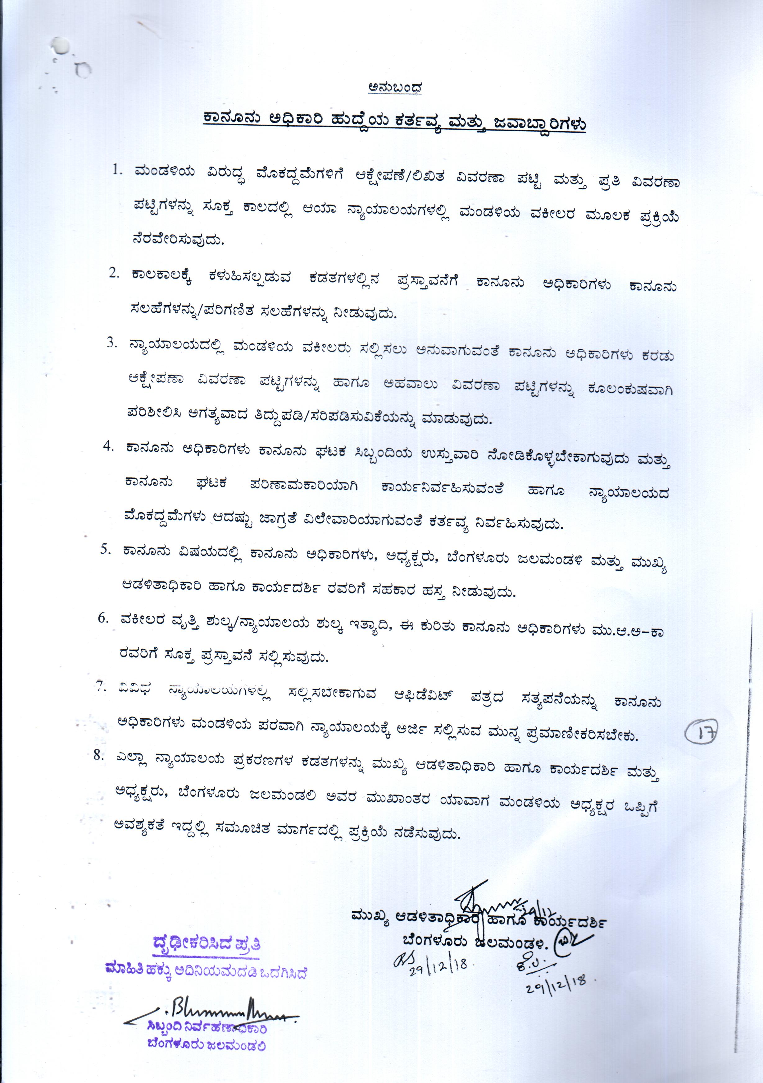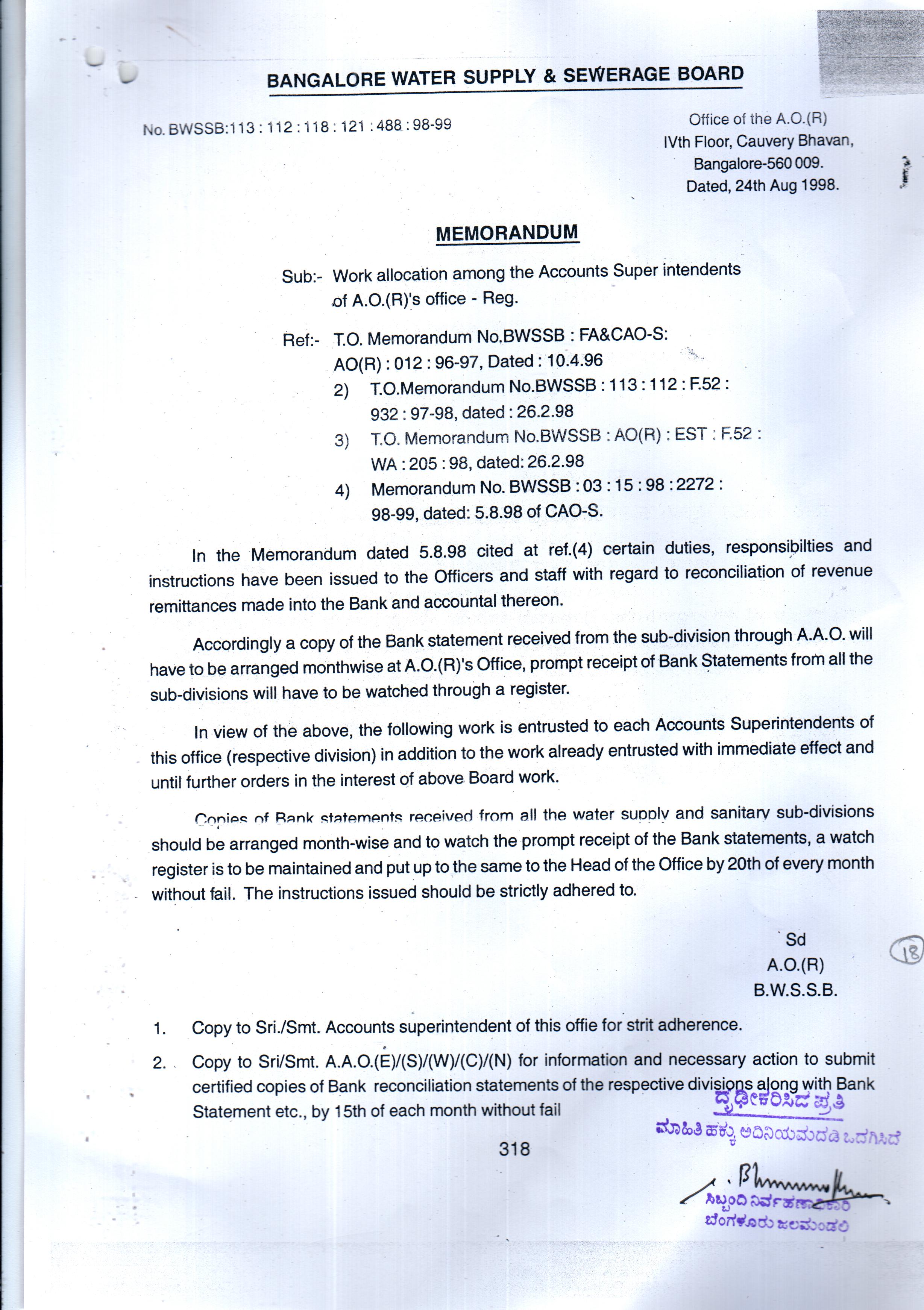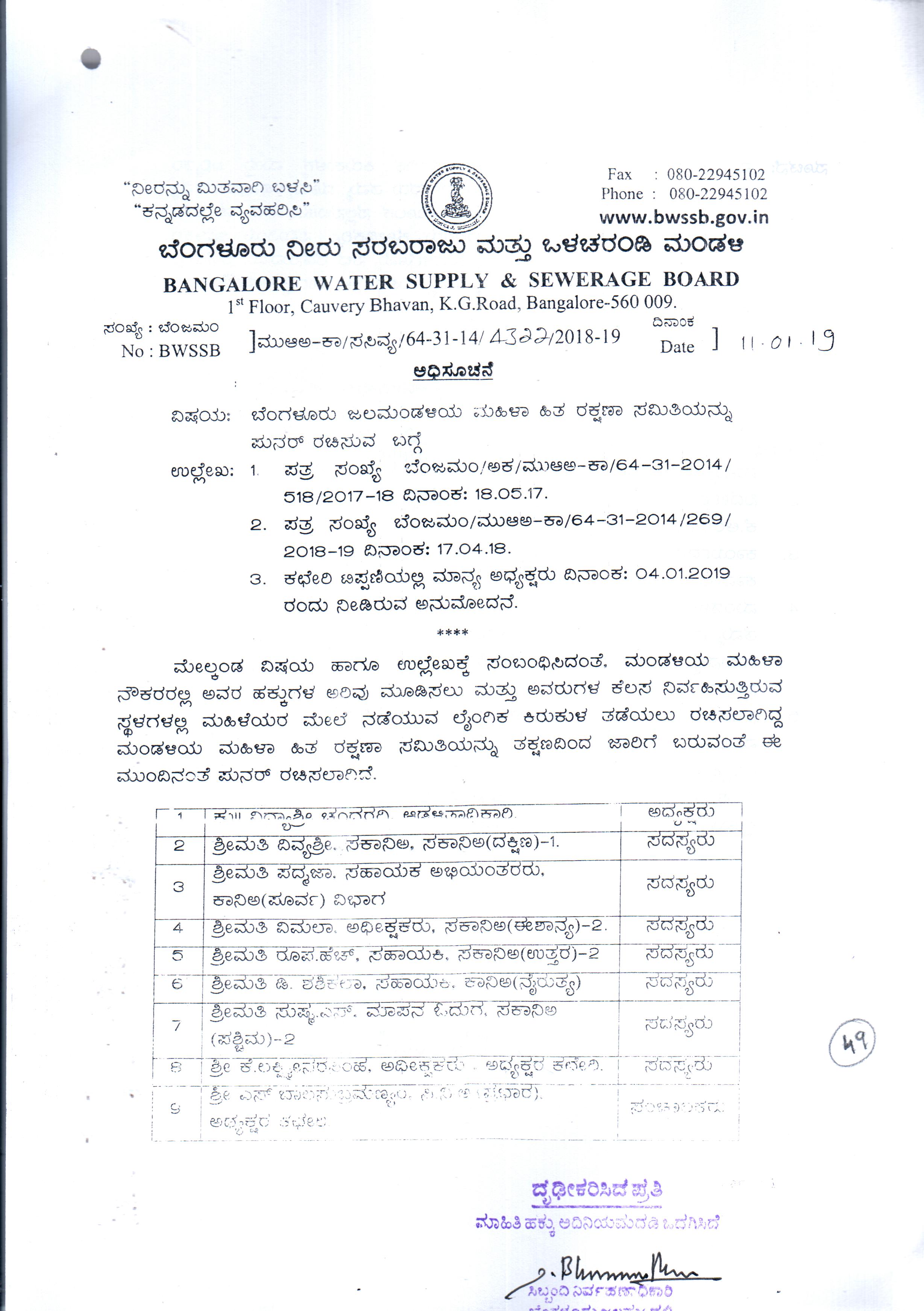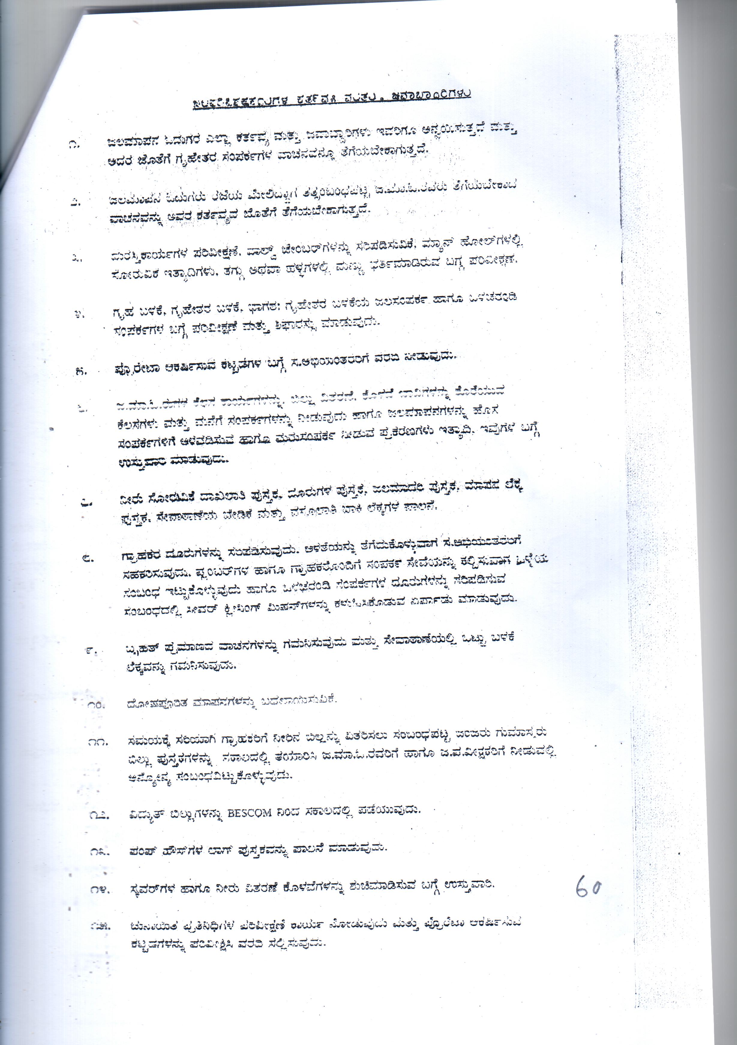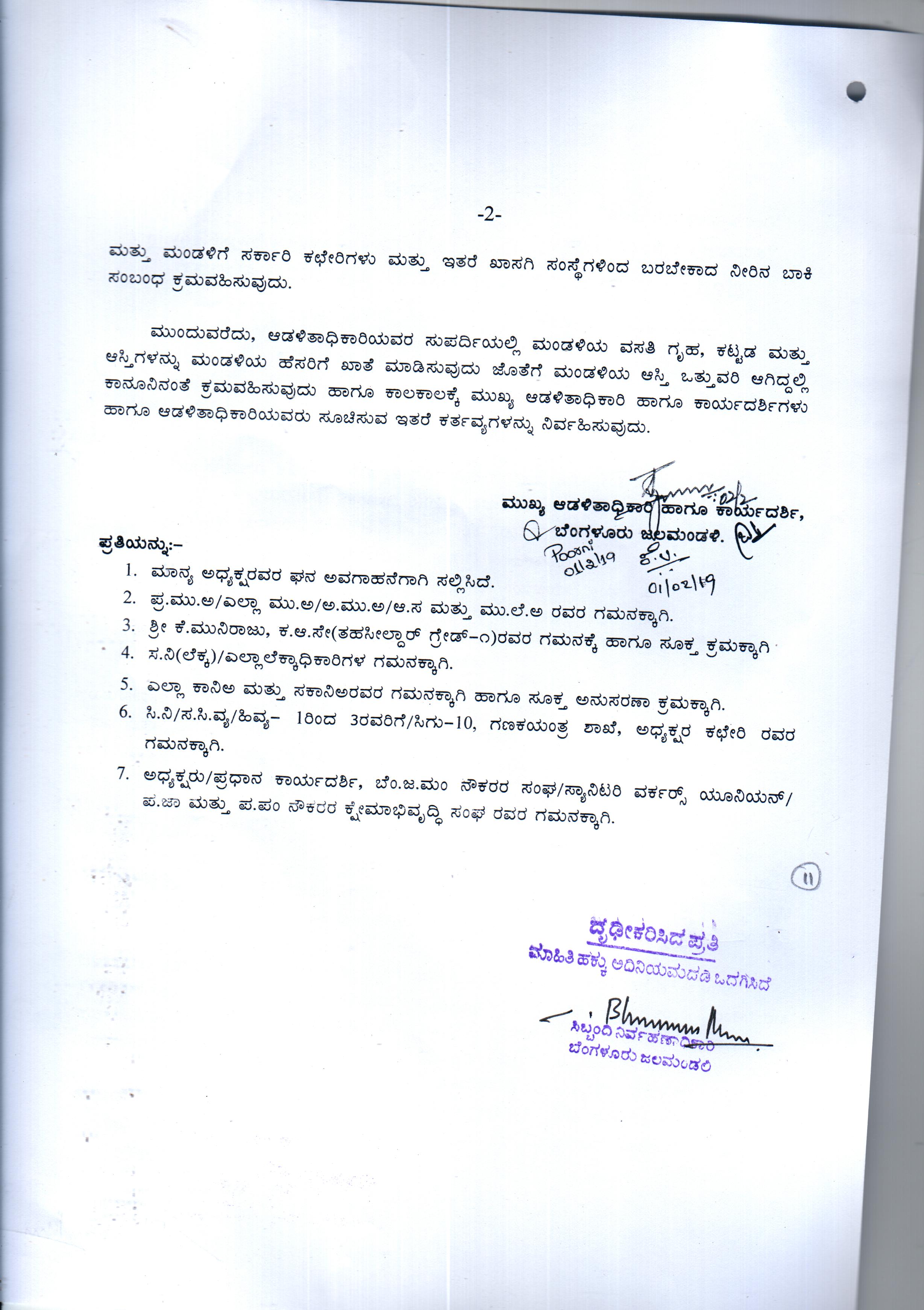 Indexing and Cataloging of BWSSB at Chairman Office