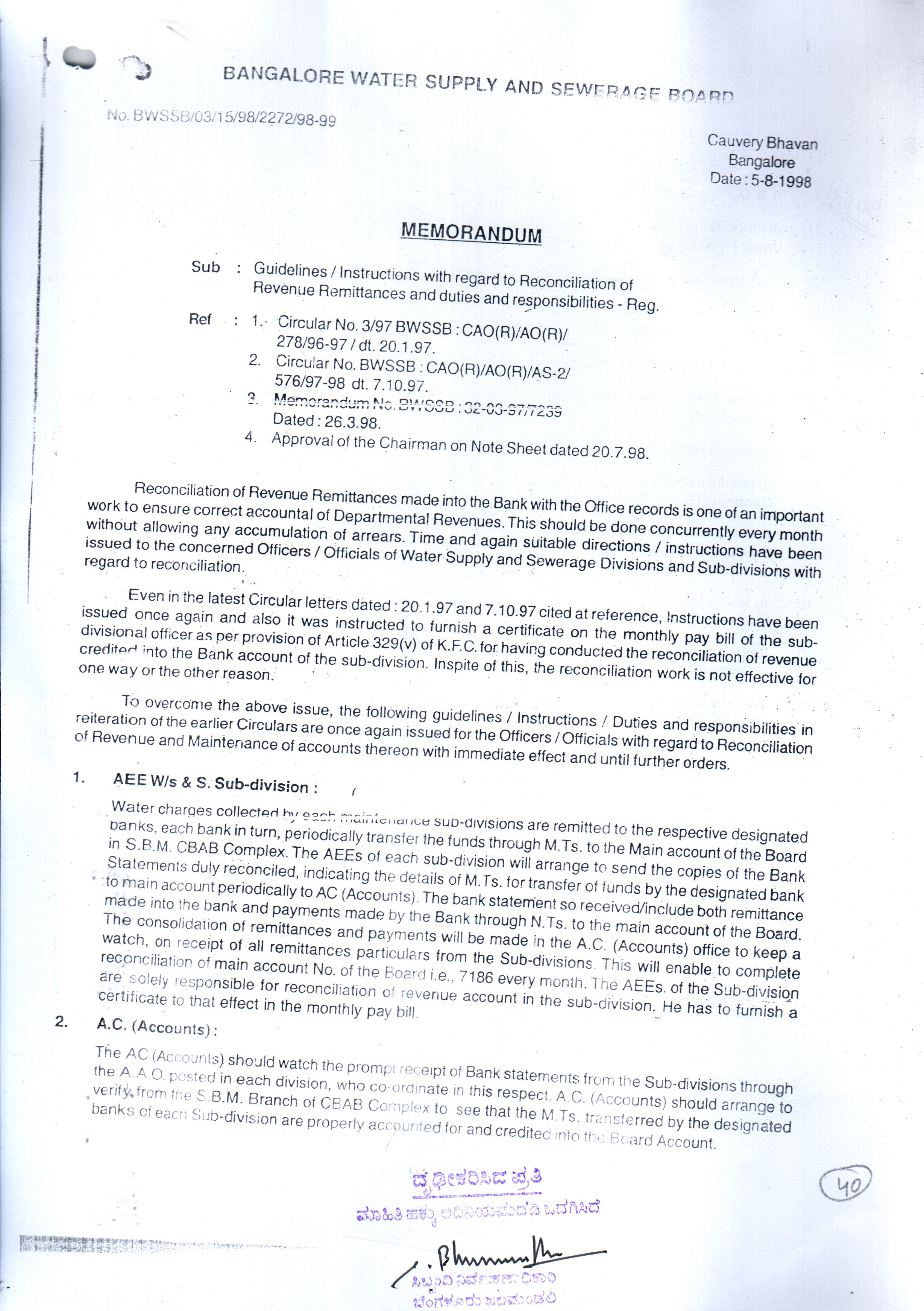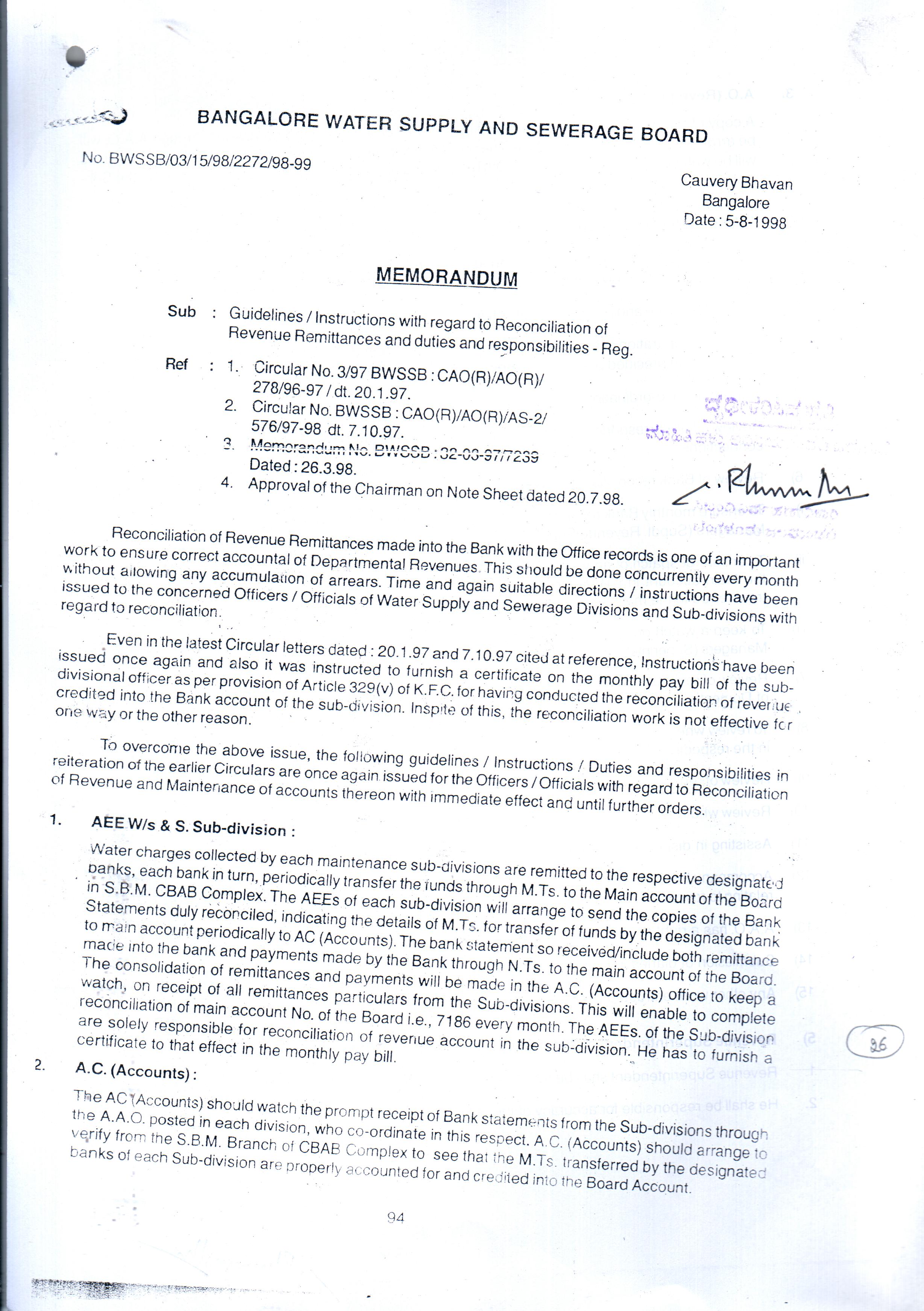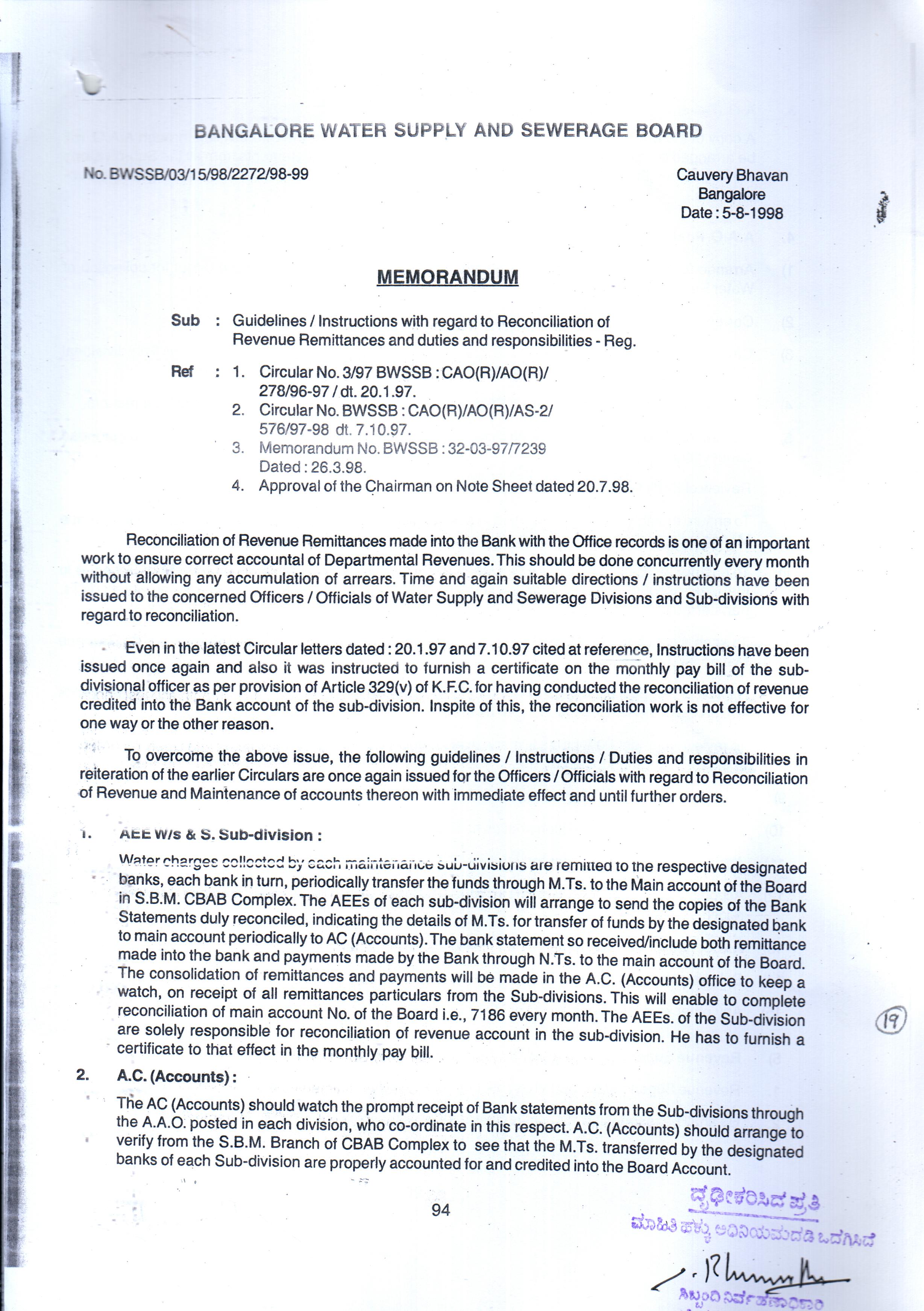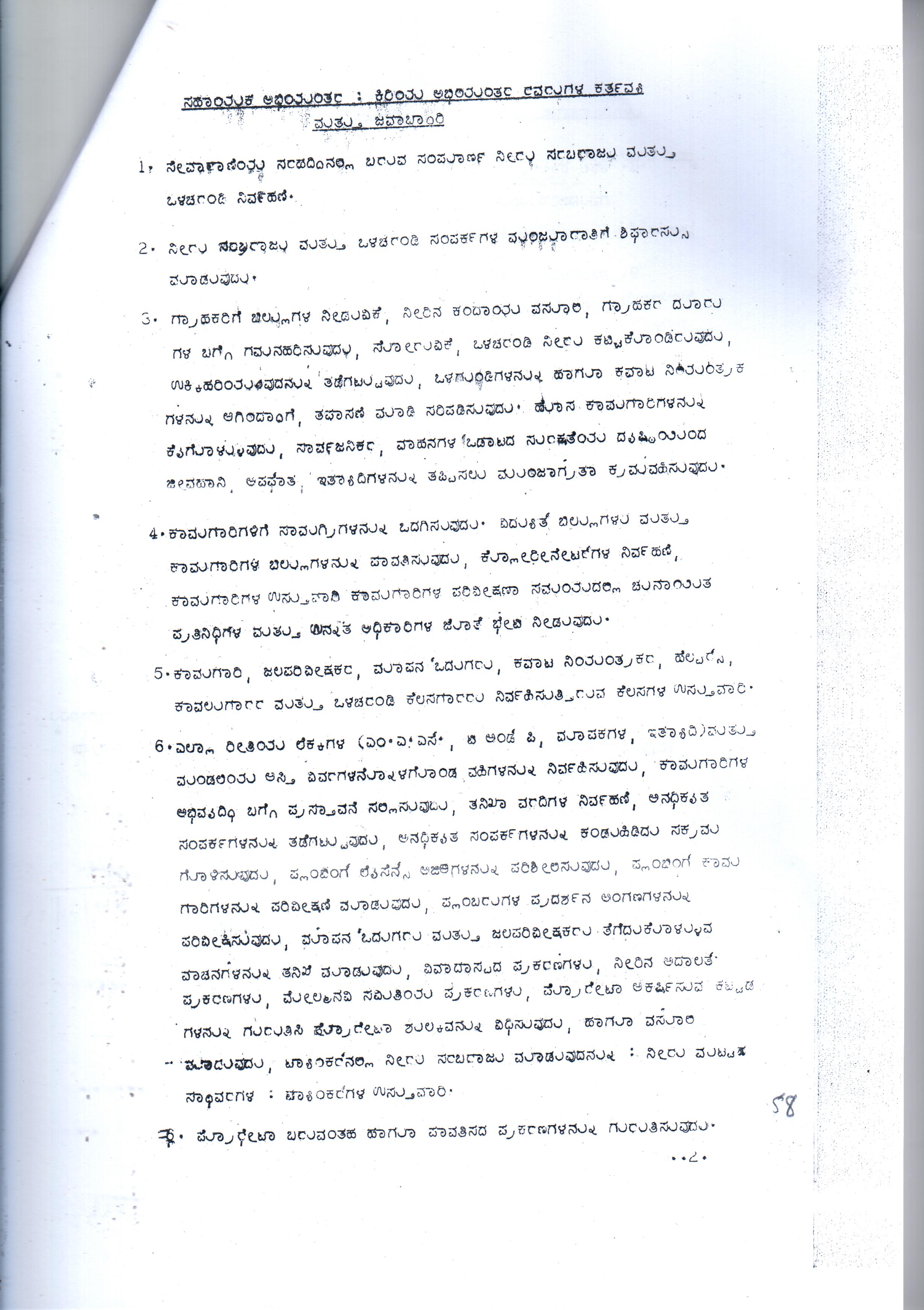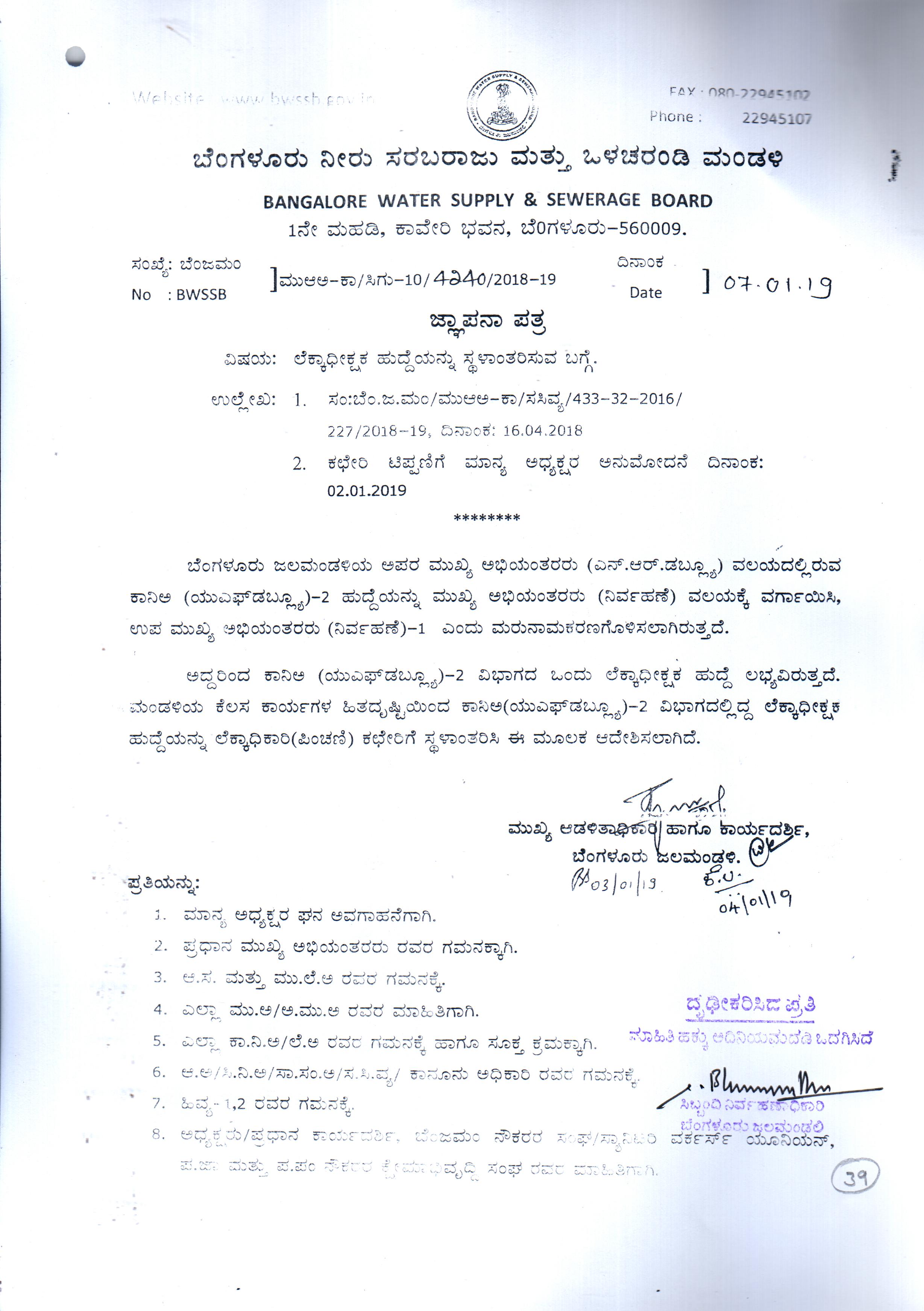Indexing and Cataloging of BWSSB at Chairman Office