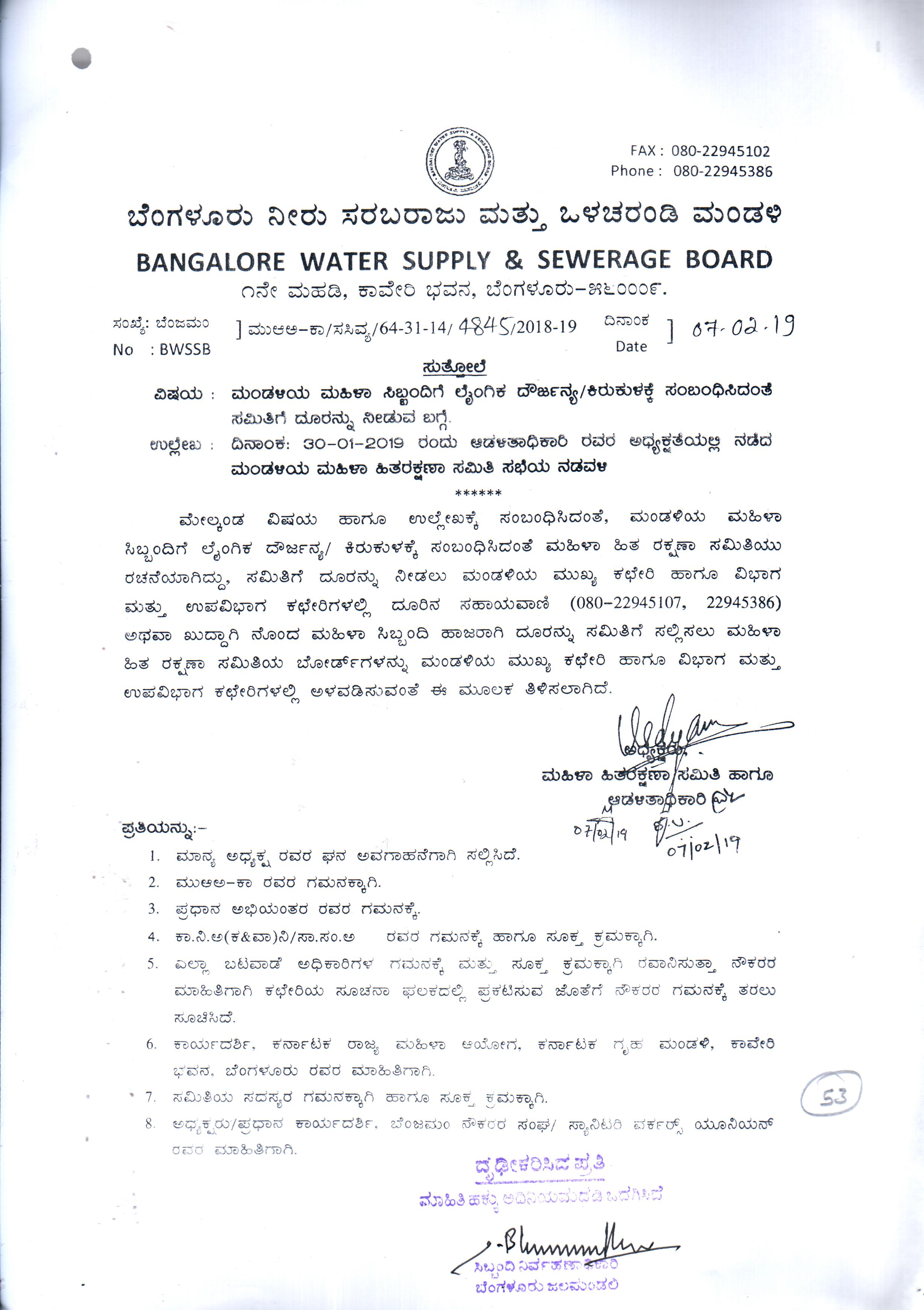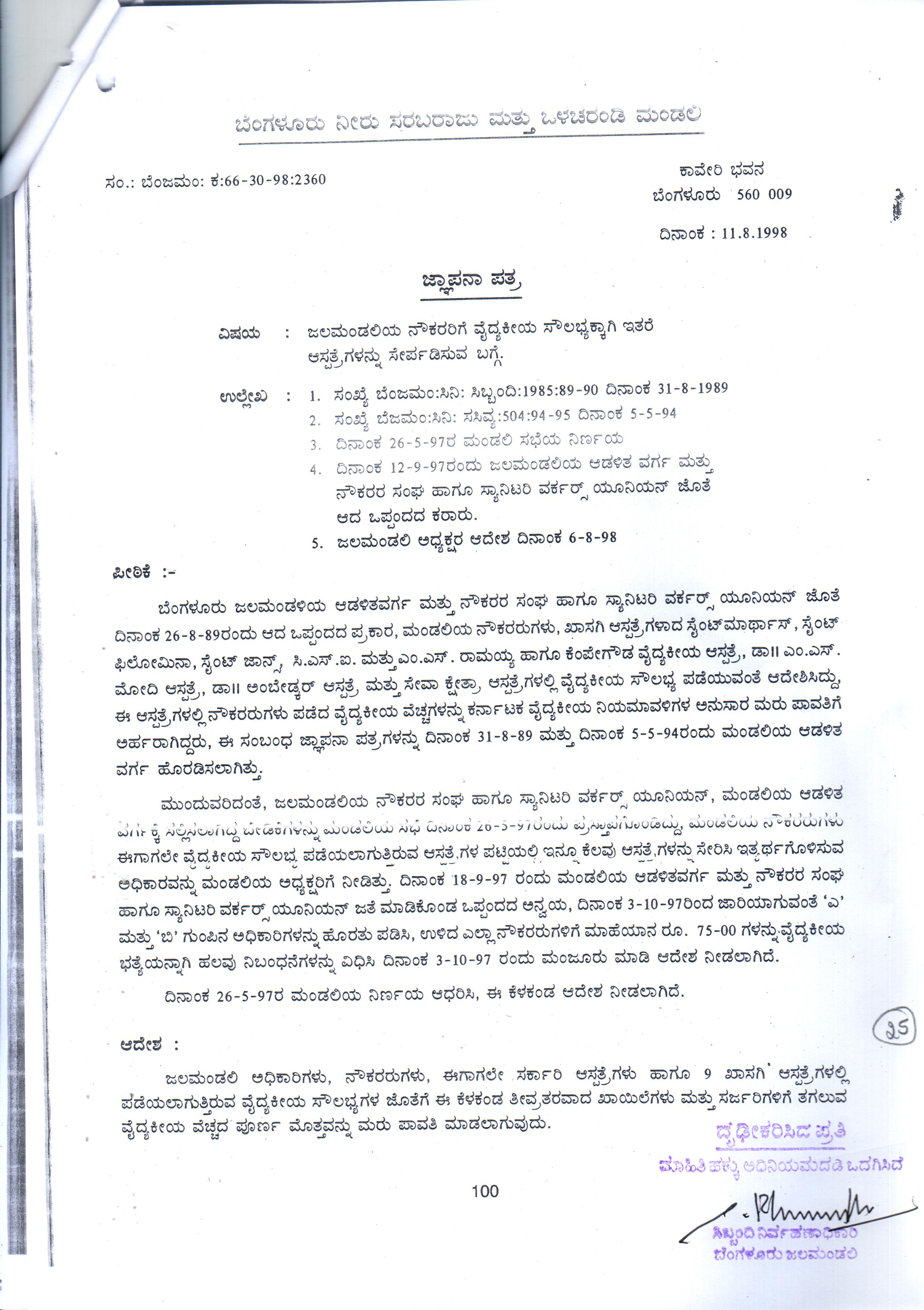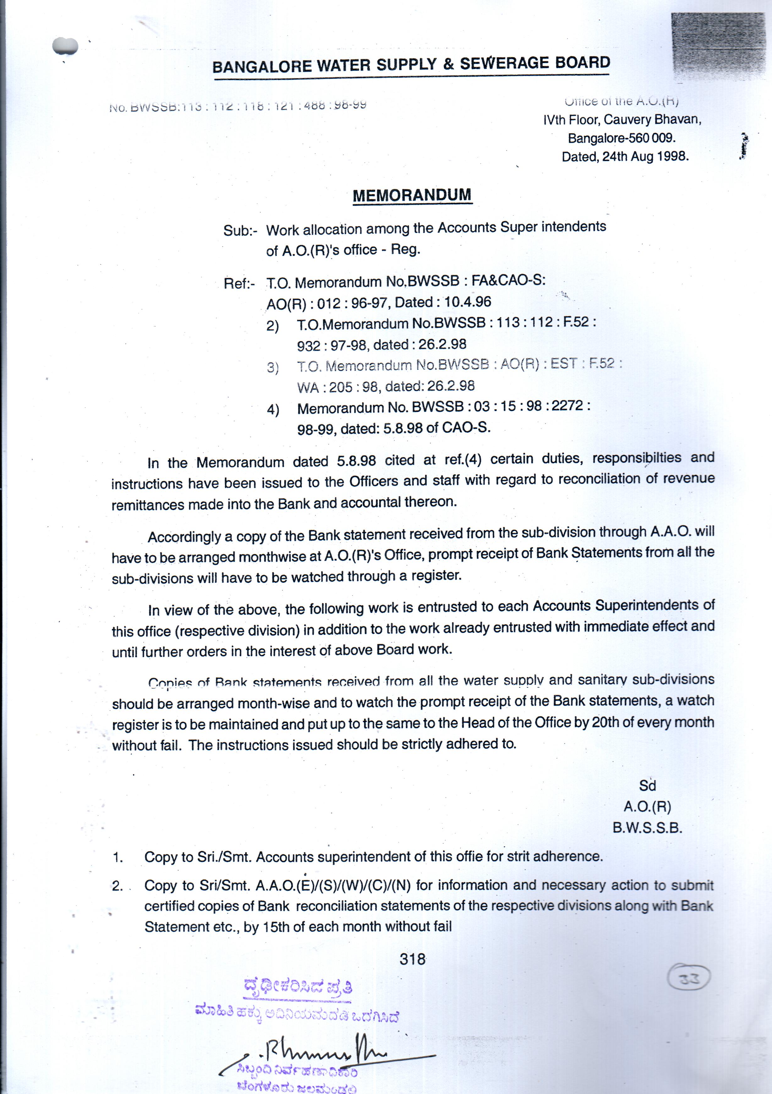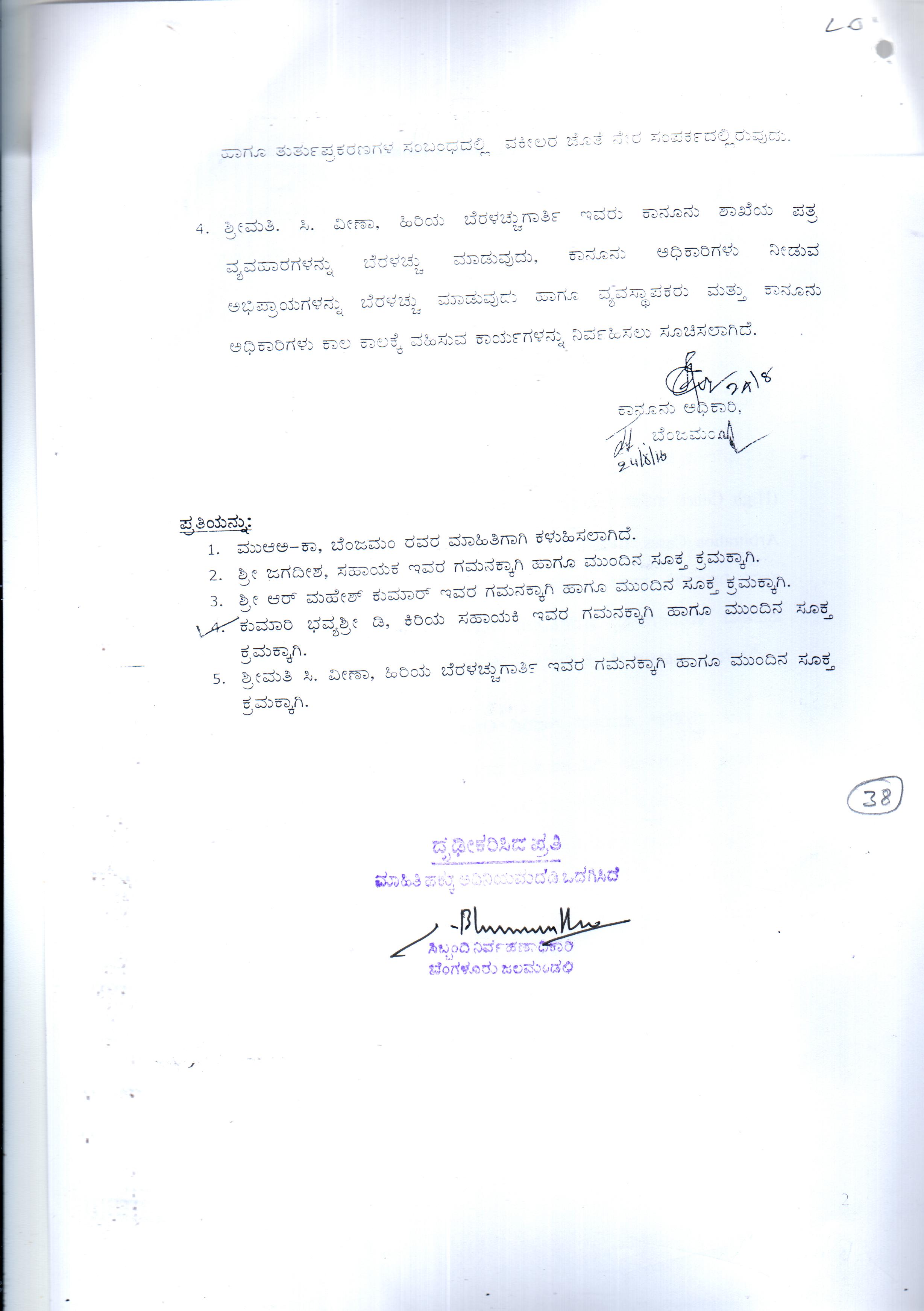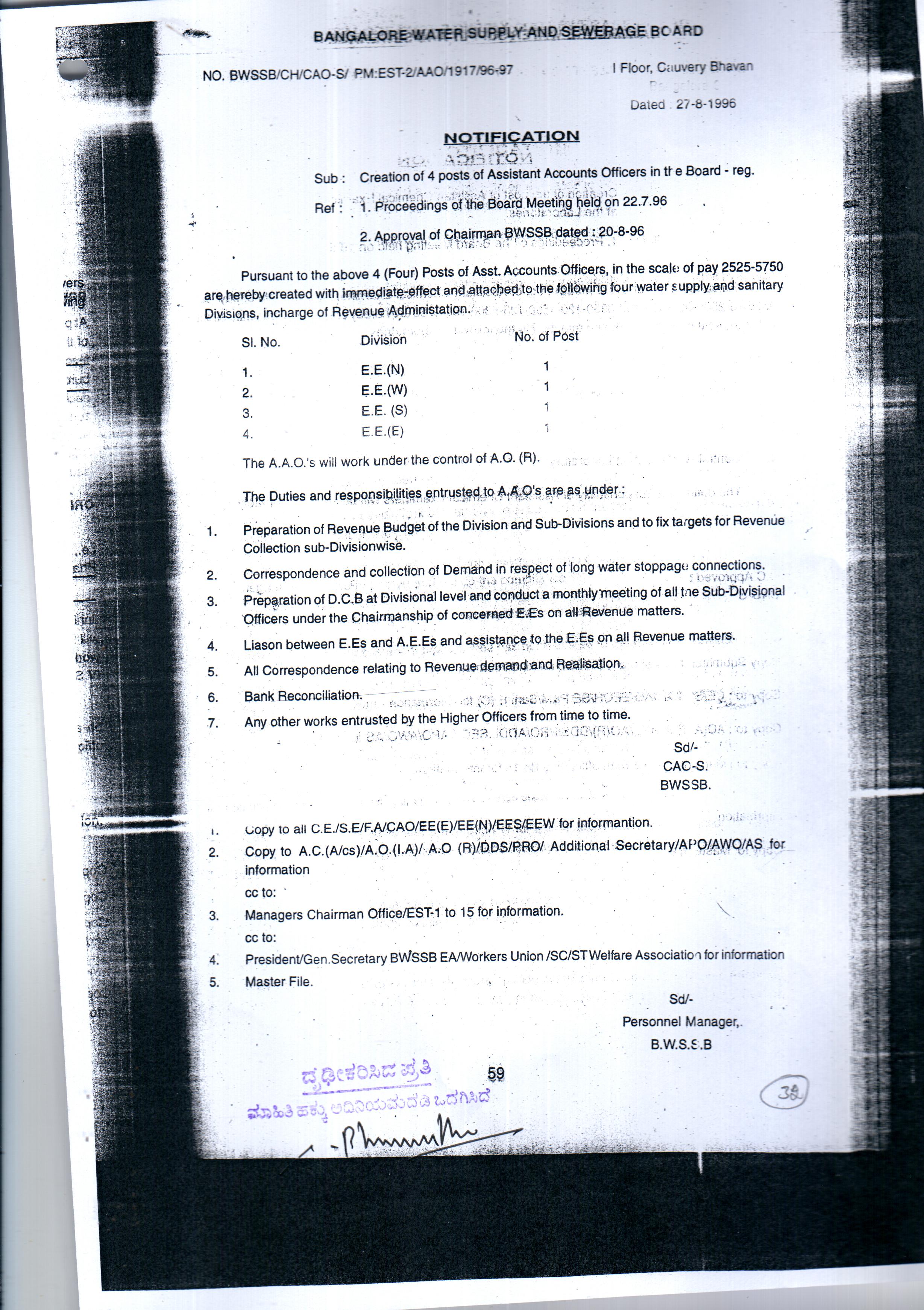Indexing and Cataloging of BWSSB at Chairman Office