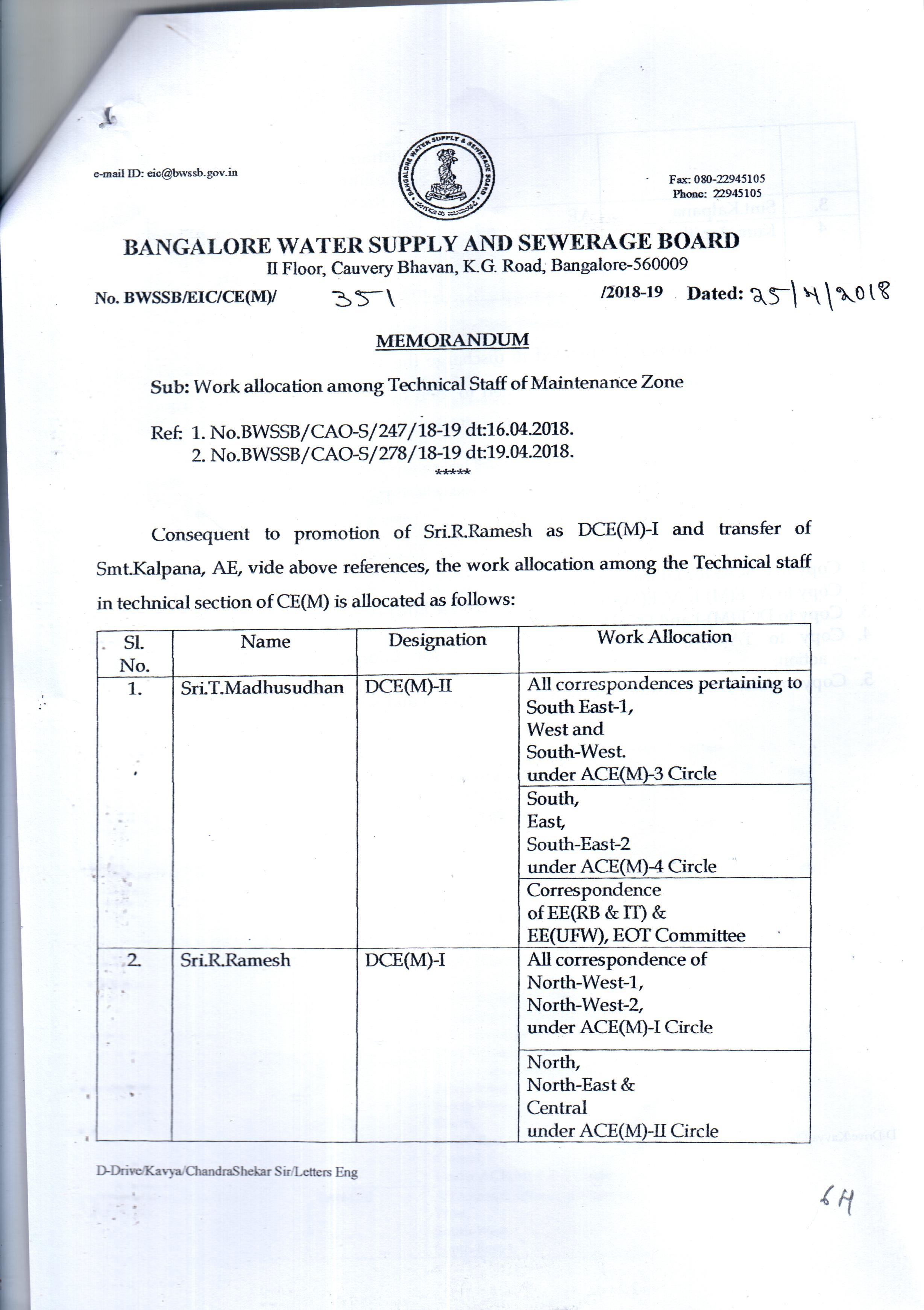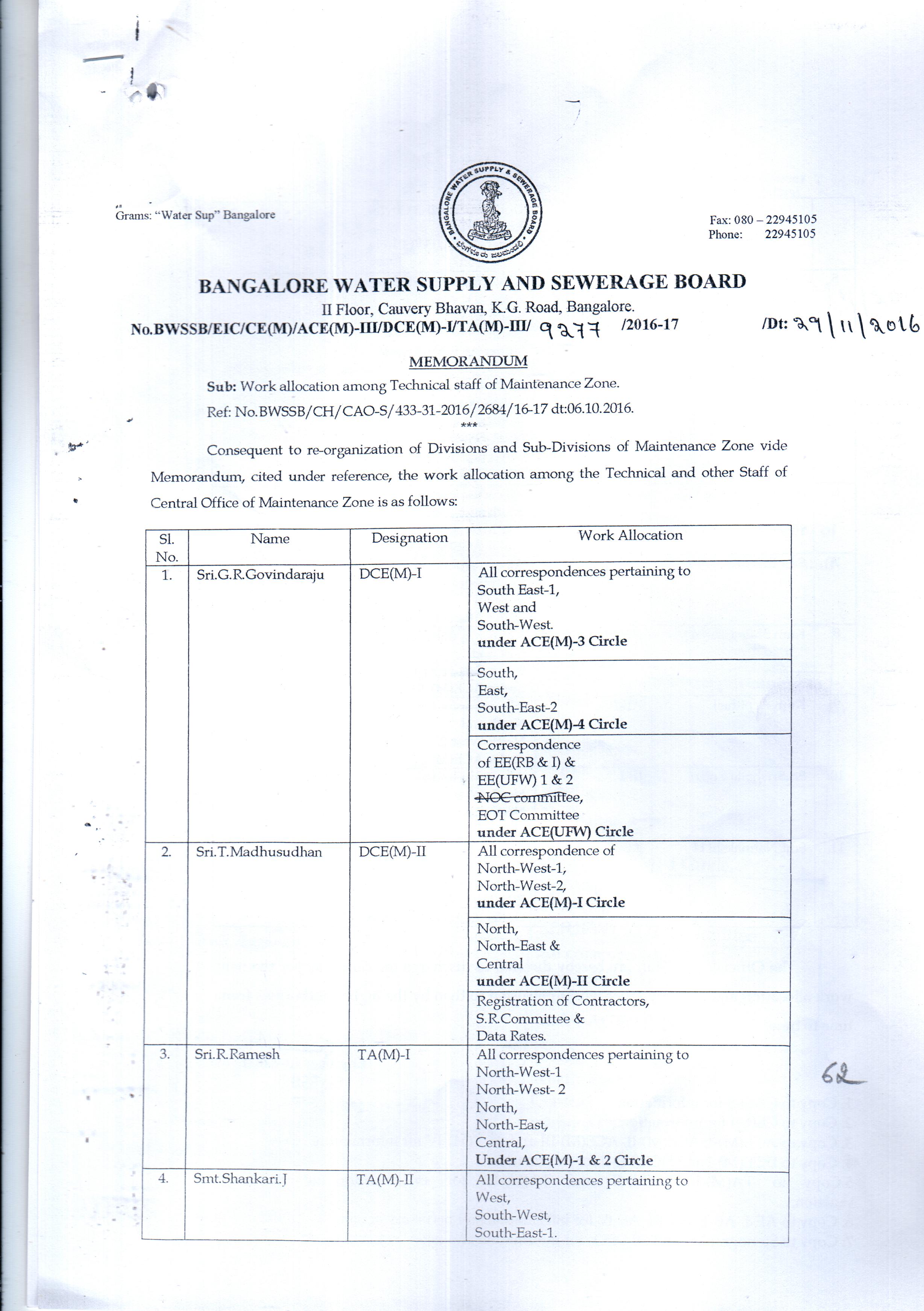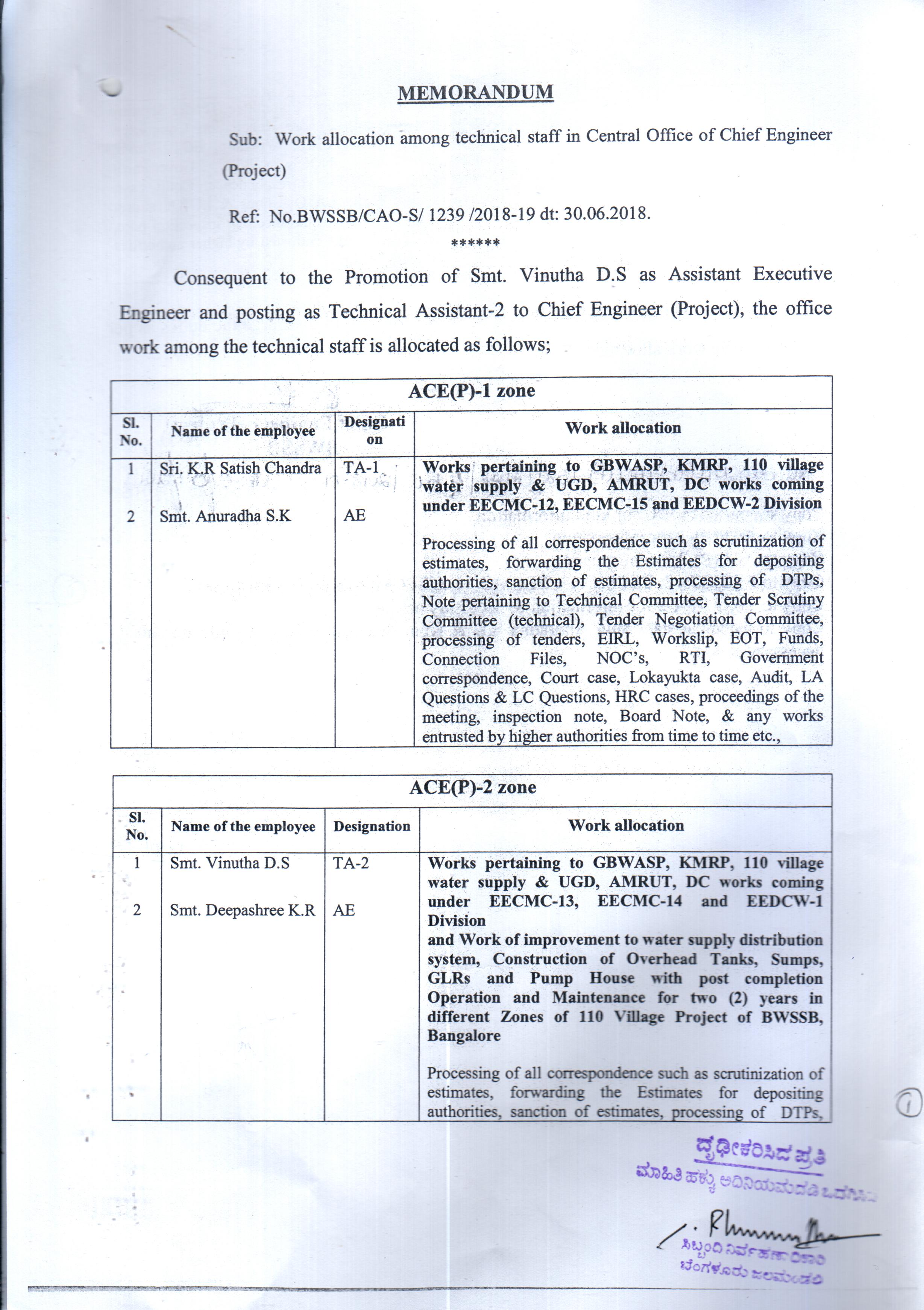 Work Allocation For Officers/Employees