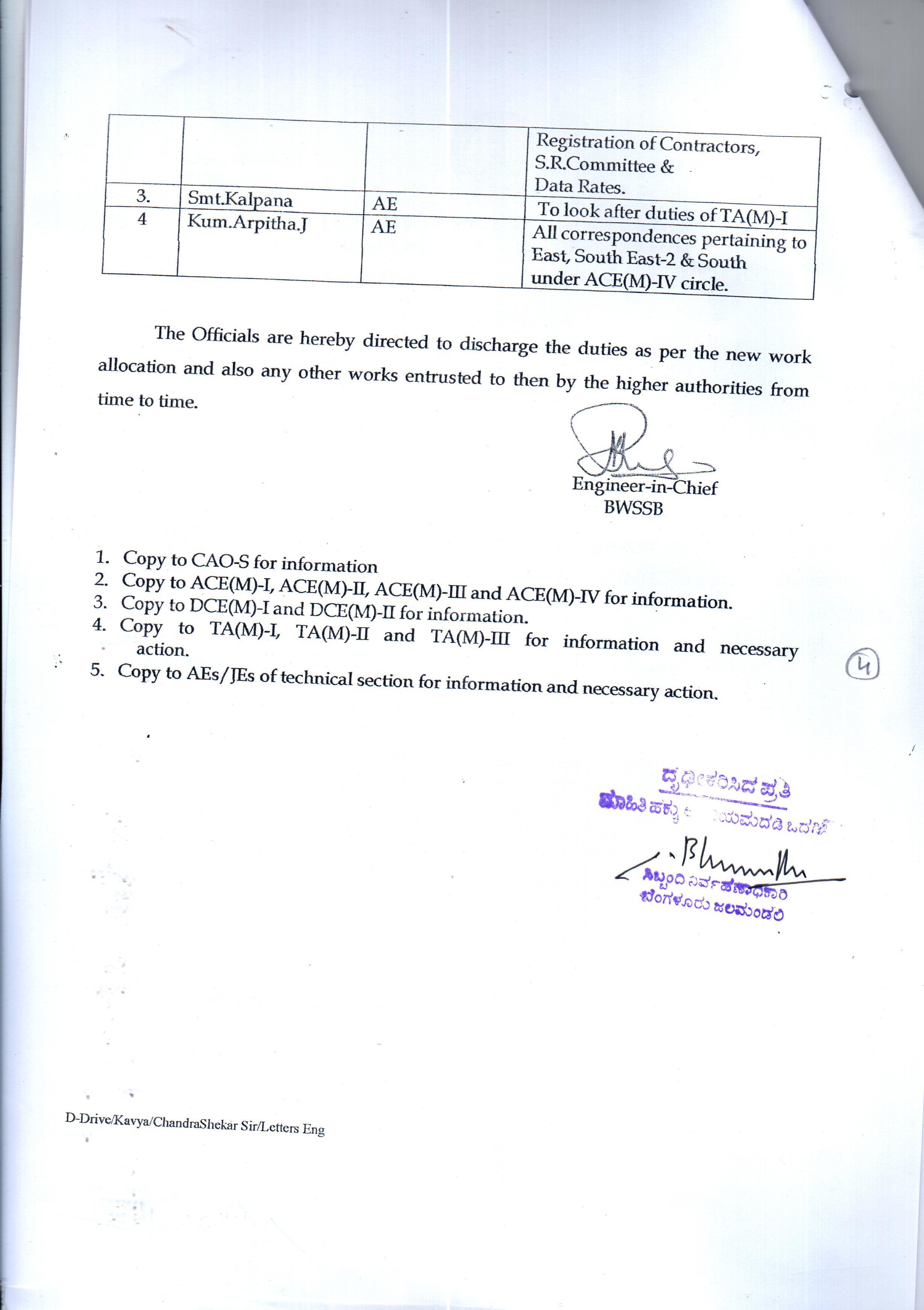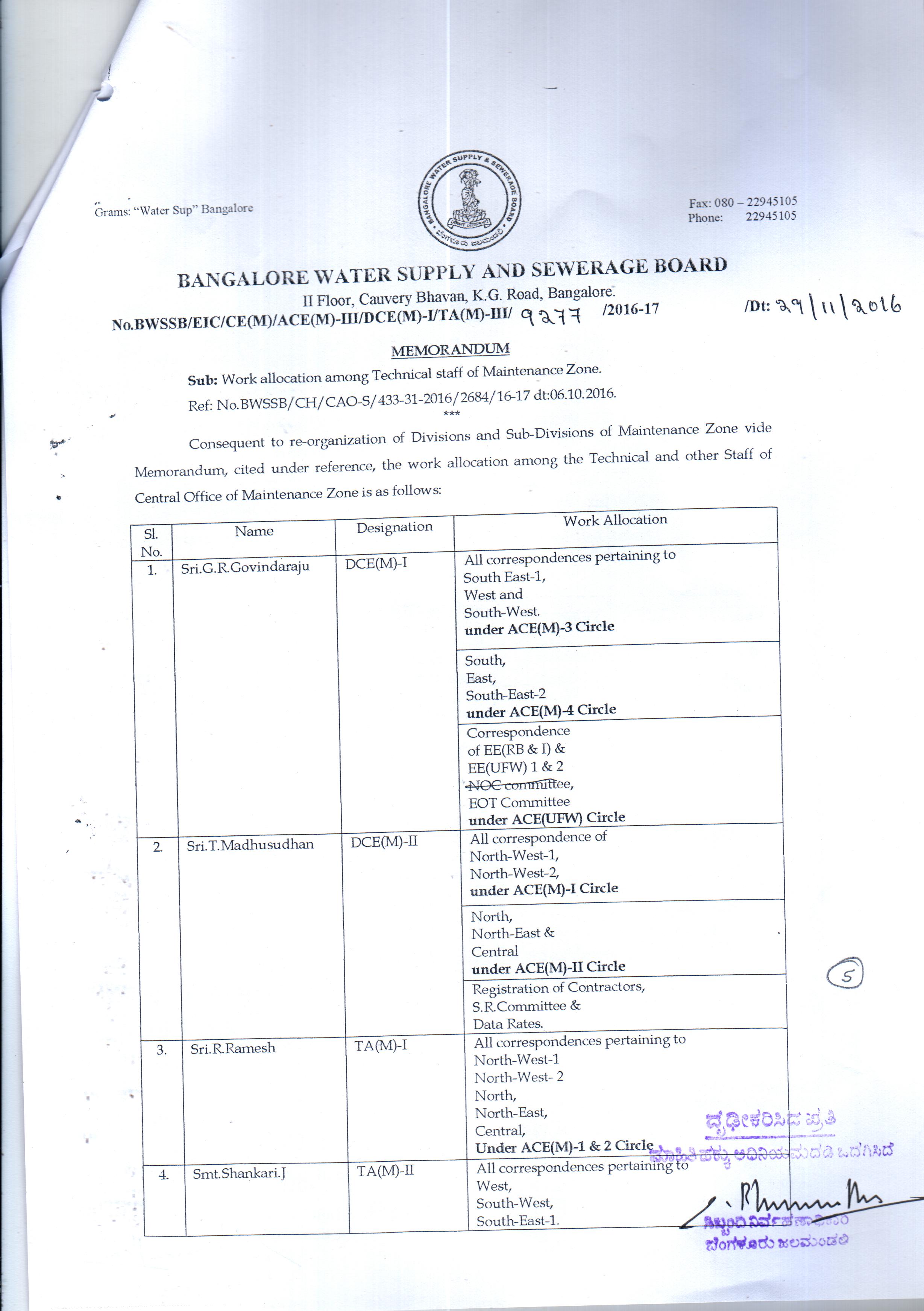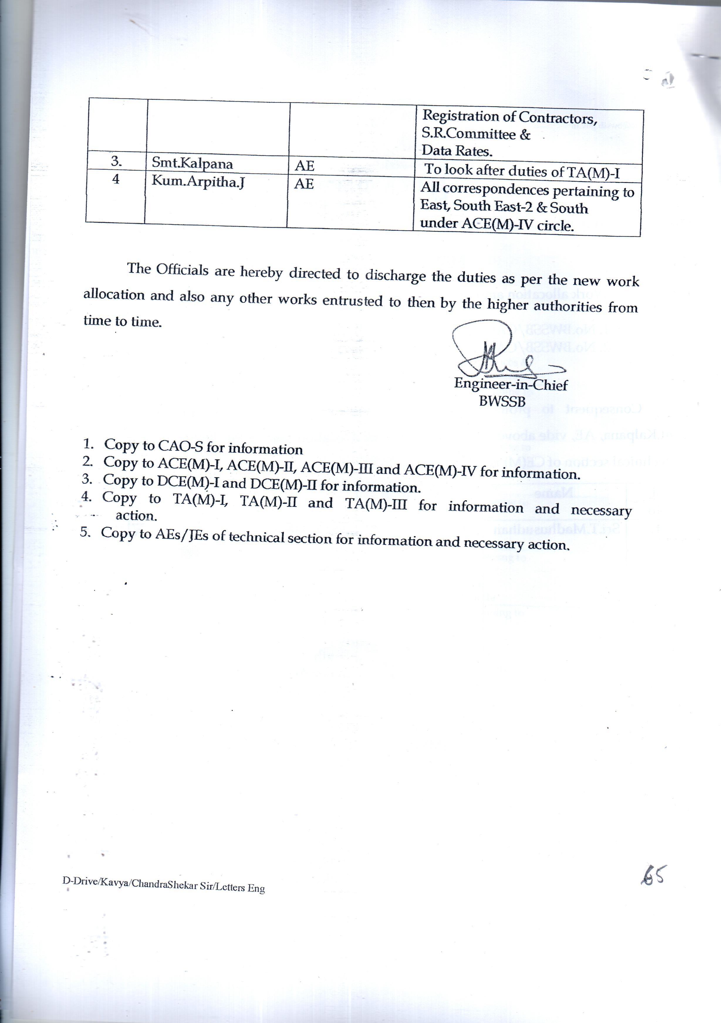 Work Allocation For Officers/Employees