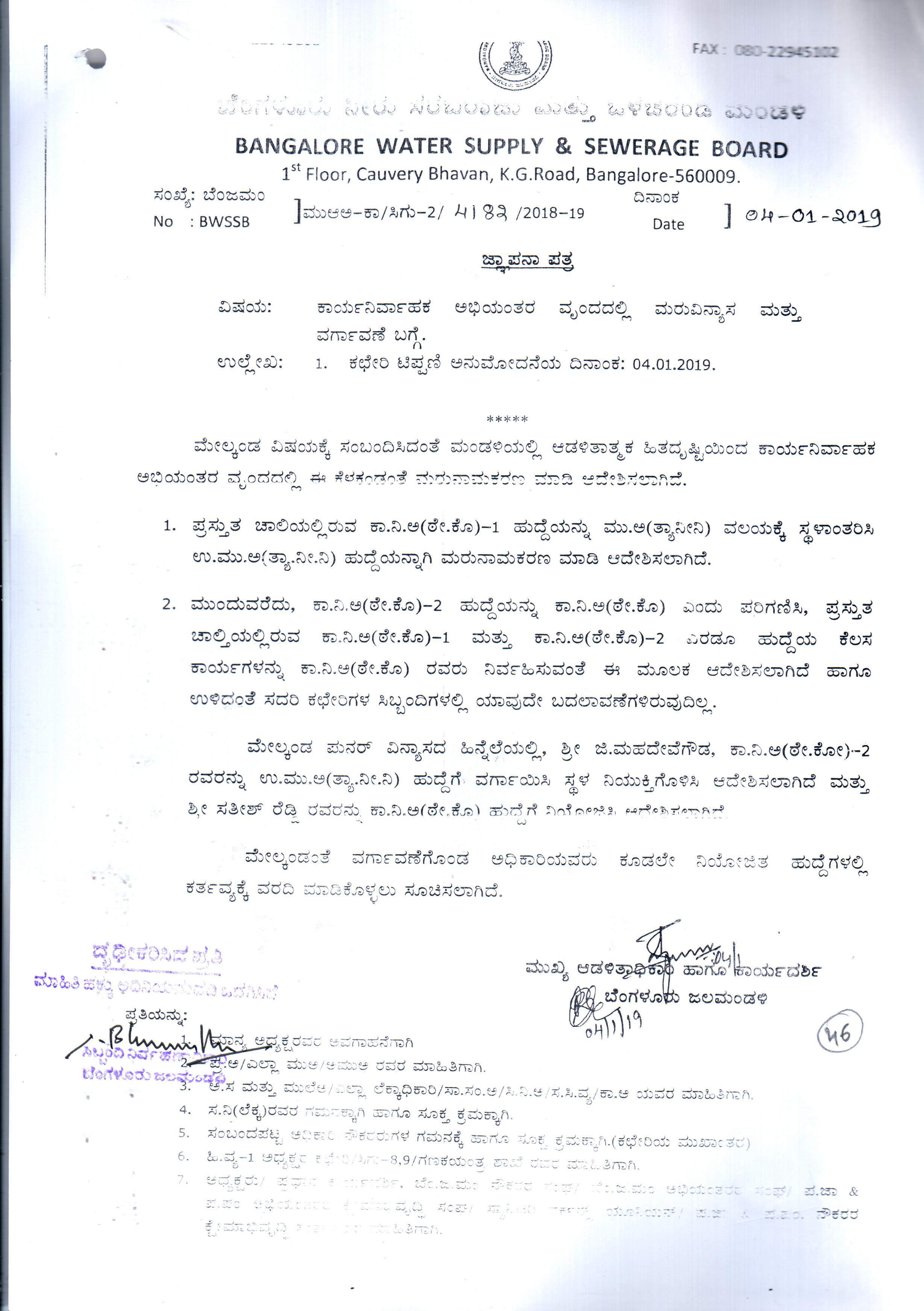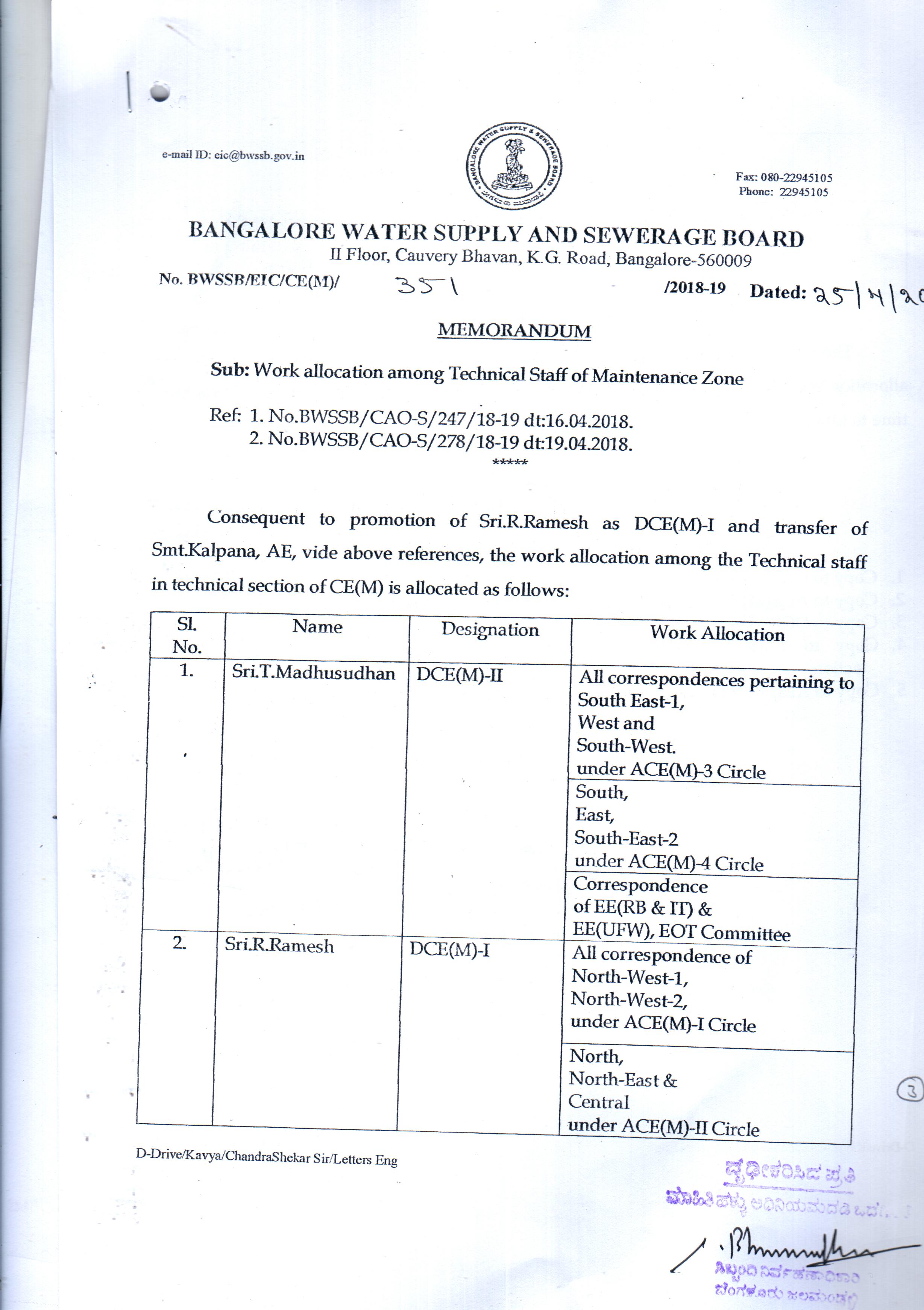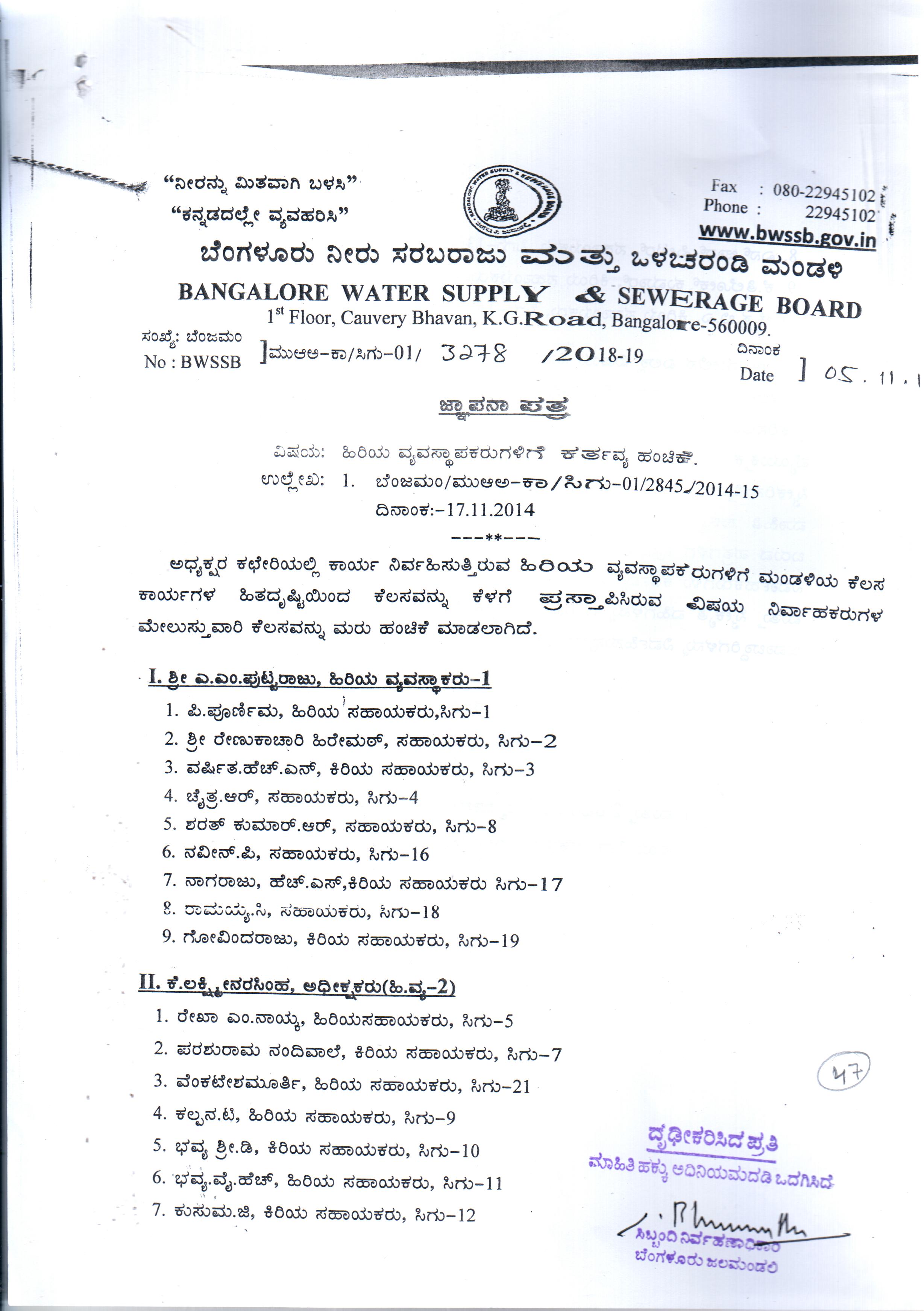 BWSSB-Kaveri Electrical Division & Sub Division